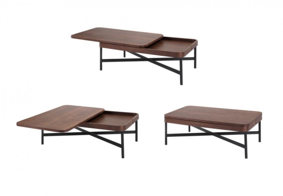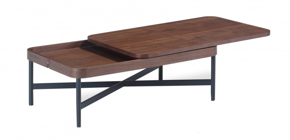 Журнальный столик из дерева с выдвижной столешницей. Верхняя подвижная часть столешницы сделана из МДФ, покрытым шпоном горного ореха — этот материал устойчив к влаге, загрязнения легко удаляются с поверхности, а средний срок службы составляет 10 лет. В столешнице есть скрытое место для хранения. В стол вы можете положить приборы, полотенца – все что угодно. Отличный вариант для любителей скрытых систем хранения и небольших пространств, где хочется вместить все, что нужно для жизни. Основа столешницы сделана из дерева грецкого ореха. Он имеет особенную, очень красивую текстуру и при этом, это надежный и износостойкий материал. Стол прослужит вам долгие годы и останется в первозданном виде на протяжении многих лет. Массив дерева с металлом идеально сочетаются друг с другом. Цвет дерева, его фактура дает теплоту, в то же время металл рядом добавляет урбанизма, современности и прочности.Такой дизайн будет радовать вас каждый день. Вы будете ощущать тепло и комфорт каждый раз, при одном только взгляде на этот столик.