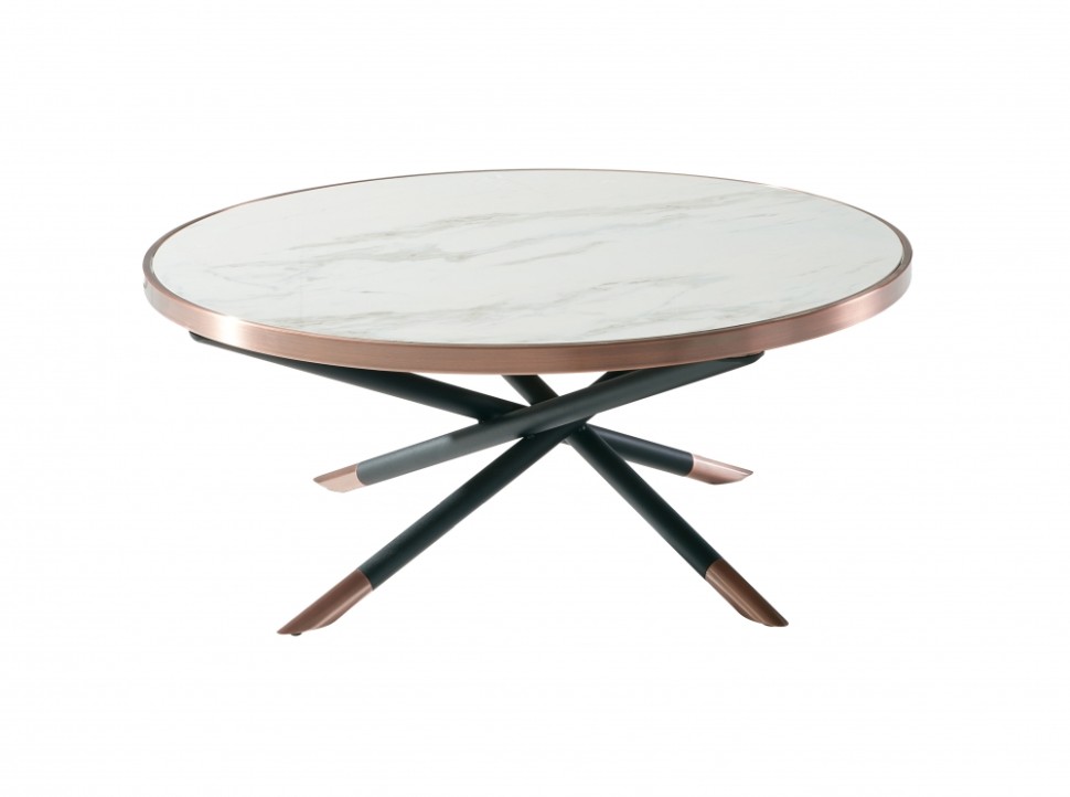 Журнальный столик с термостойкой столешницей под мрамор, металлическими ножками и элементами декора в цвете розовое золото. Сочетание мраморного покрытия и металла выглядит красиво, стильно и элегантно. А розовое золото – это тренд в современных интерьерах. Розово-медный декор завораживает, расслабляет и настраивает на романтичный лад. А контрастный черный цвет элегантно оттеняет, создавая приятный для глаз дуэт. Вам будет приятно ощущать такую эстетику в своем пространстве. Закрученные ножки создают динамику в пространстве. Это яркий и необычный дизайнерский прием. Столик можно разместить рядом с диваном, поставить на него чашку чая/кофе или положить любимую книгу. Вы будете чувствовать себя по-королевски, когда придете домой после тяжелого рабочего дня и будете отдыхать в окружении таких стильных и функциональных вещей.