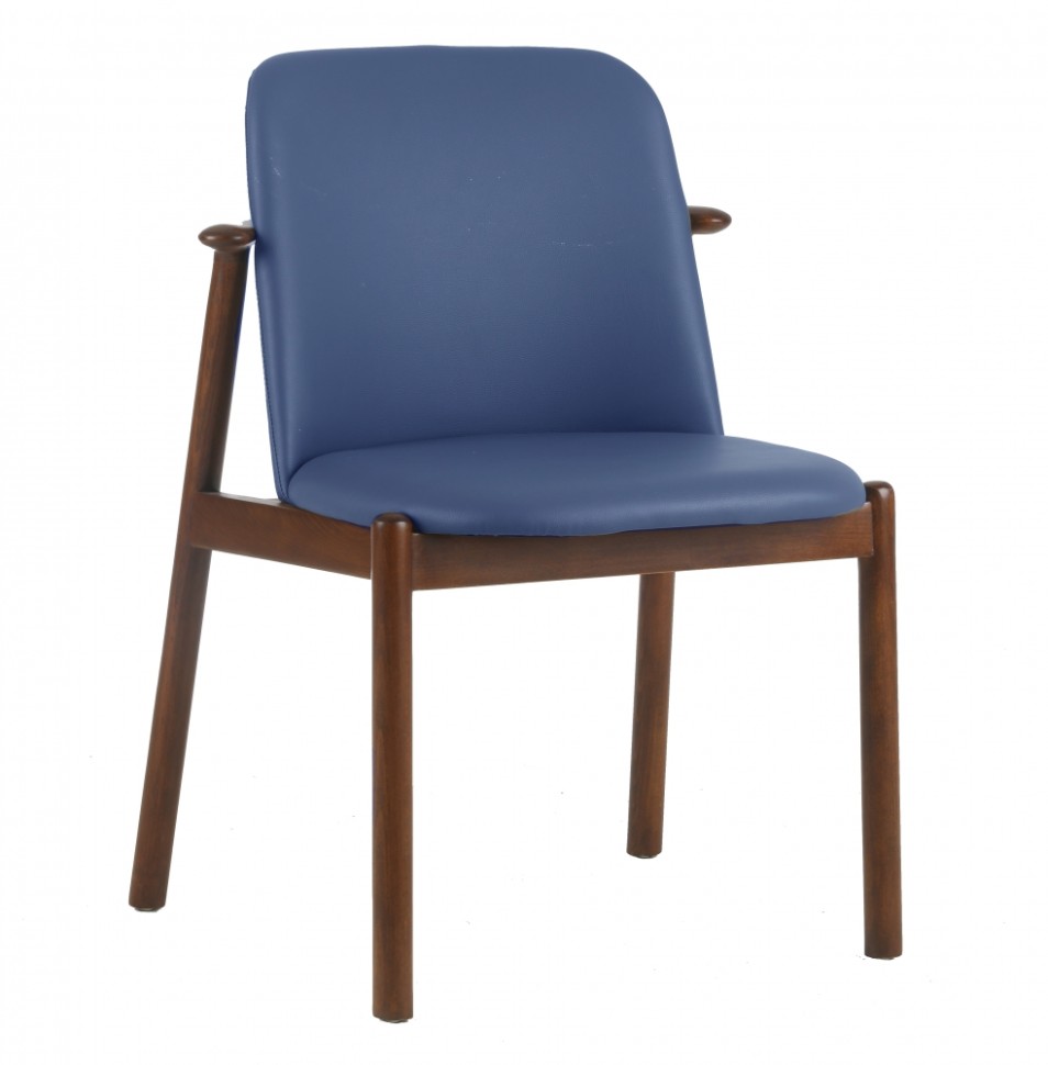 Стул в синем цвете с деревянными ножками из новой коллекции Milosh Tendence. Эксклюзивная дизайнерская модель. Задние ножки немного скошены – это придает стулу необычный вид, а в вашем пространстве появляется свежий, необычный акцент. Благодаря актуальному и функциональному дизайну стулья станут ярким украшением вашей кухни, к рабочей зоны или бьюти-уголка. Необычная геометричная форма ярко выделяется на спокойном фоне вокруг, придает пространству динамичность. Такая модель отлично впишется как в спокойные тона, так и в яркие эклектичные мотивы. У стула мягкое полукруглое сиденье с высокой спинкой анатомической формы. Такая конструкция будет максимально комфортна для вас.