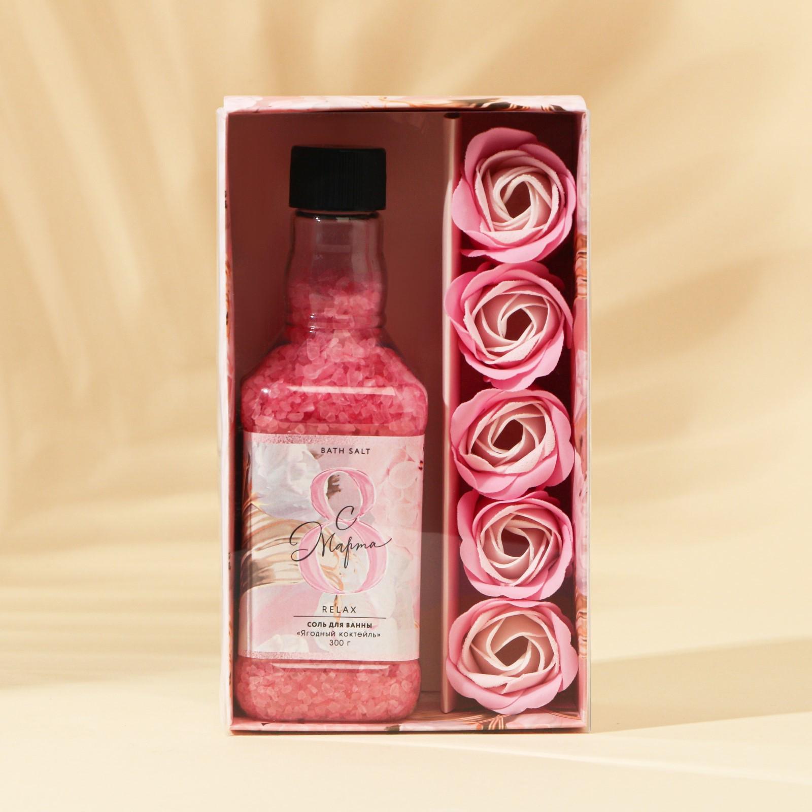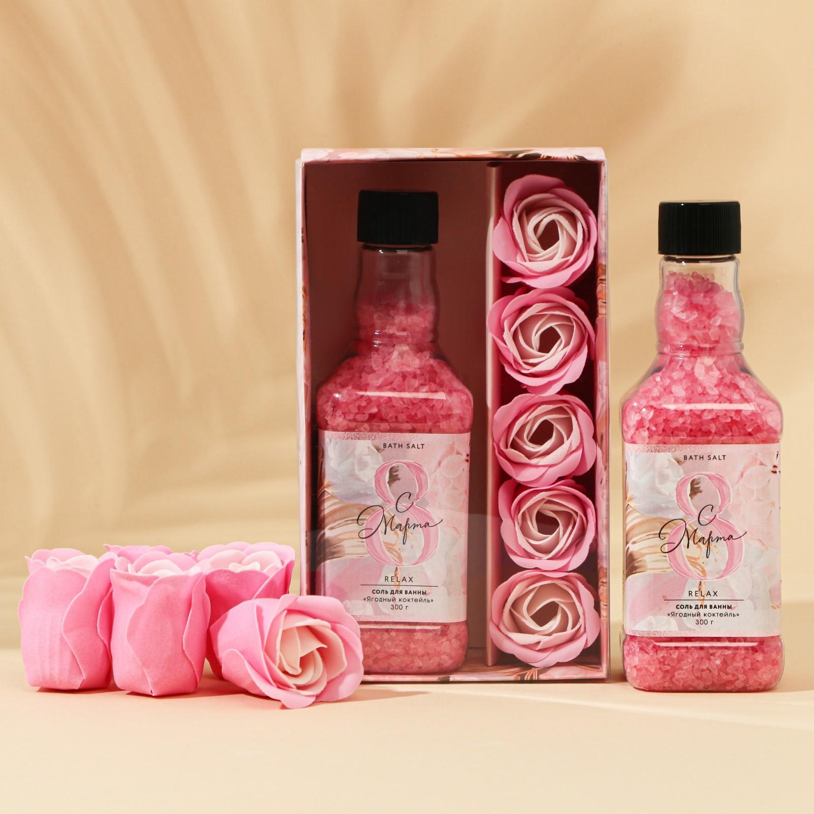 Набор "8 марта", соль для ванны 300 г, аромат ягодный и мыльные лепестки, 5 шт