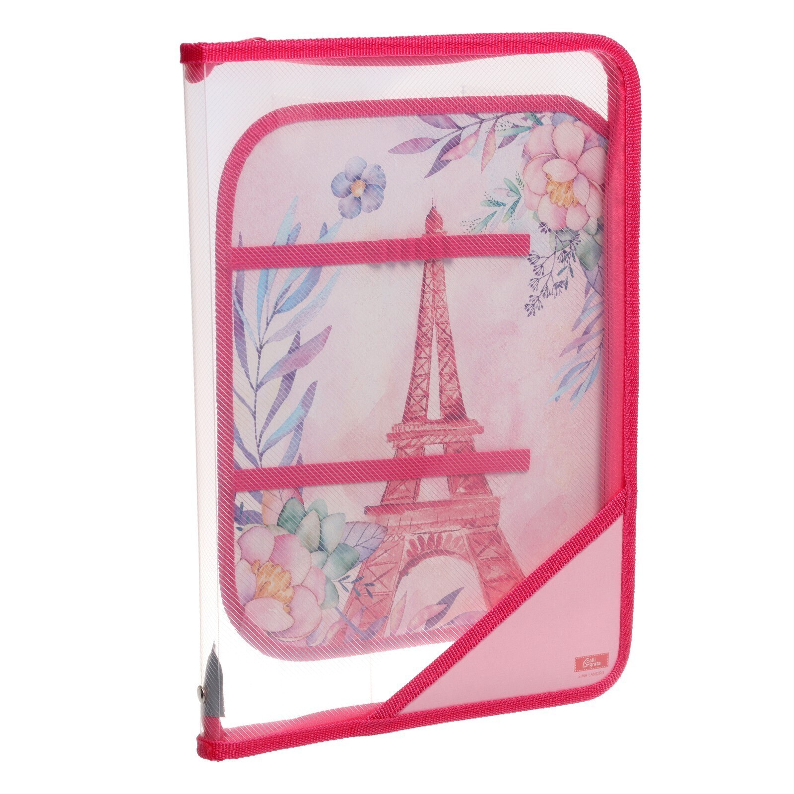 Папка для труда А4, 325 х 230 х 25 мм, молния вокруг, откидная планка, пластиковая, ПТР-1, Calligrata "Париж"