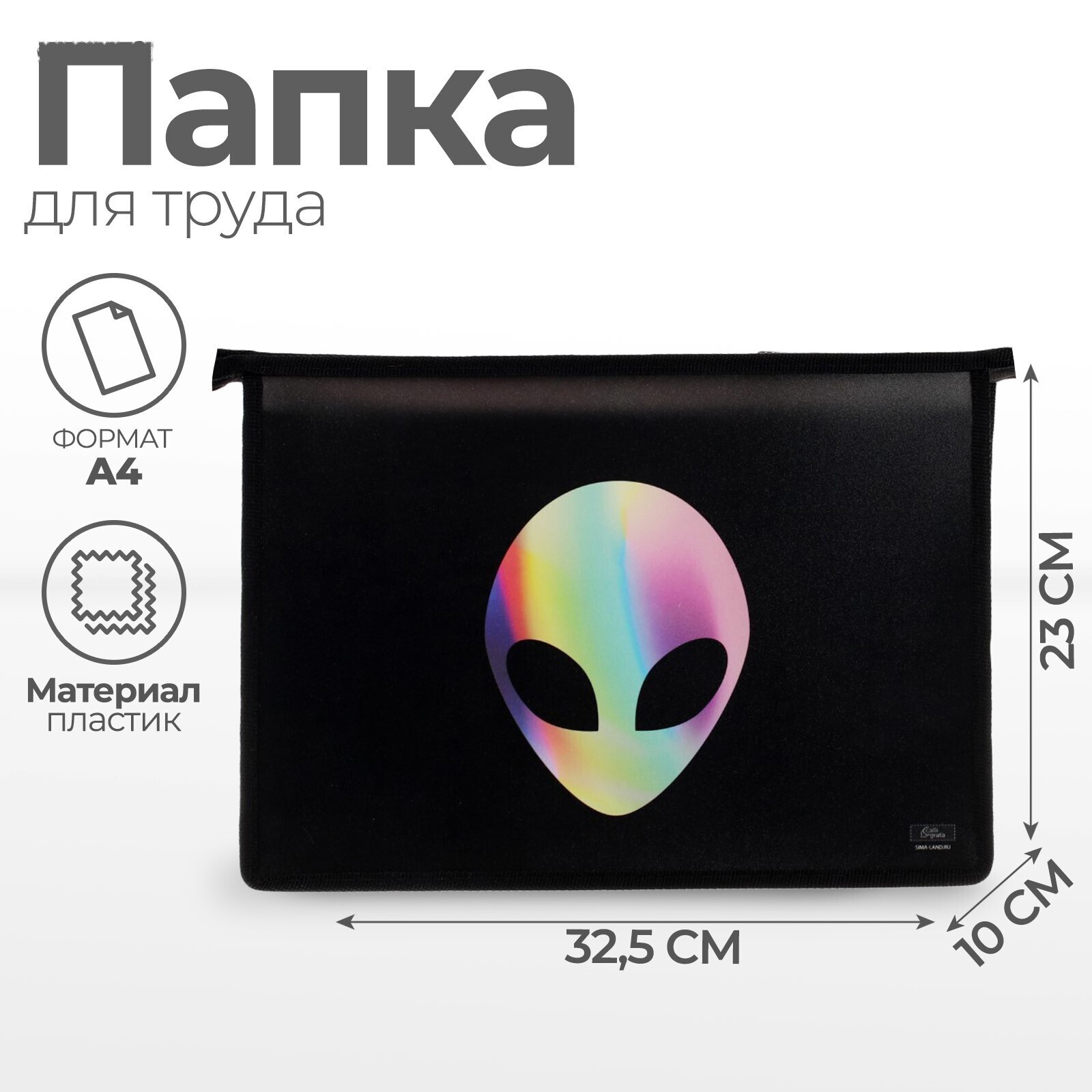 Папка для труда А4, 325 х 230 х 100 мм, молния сверху, пластиковая, ПТР-22 "Пришелец"