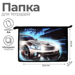 Папка для тетрадей А4, 230 х 325 х 55 мм, молния сверху, пластиковая, ПМ-А4-29 Calligrata "Авто"