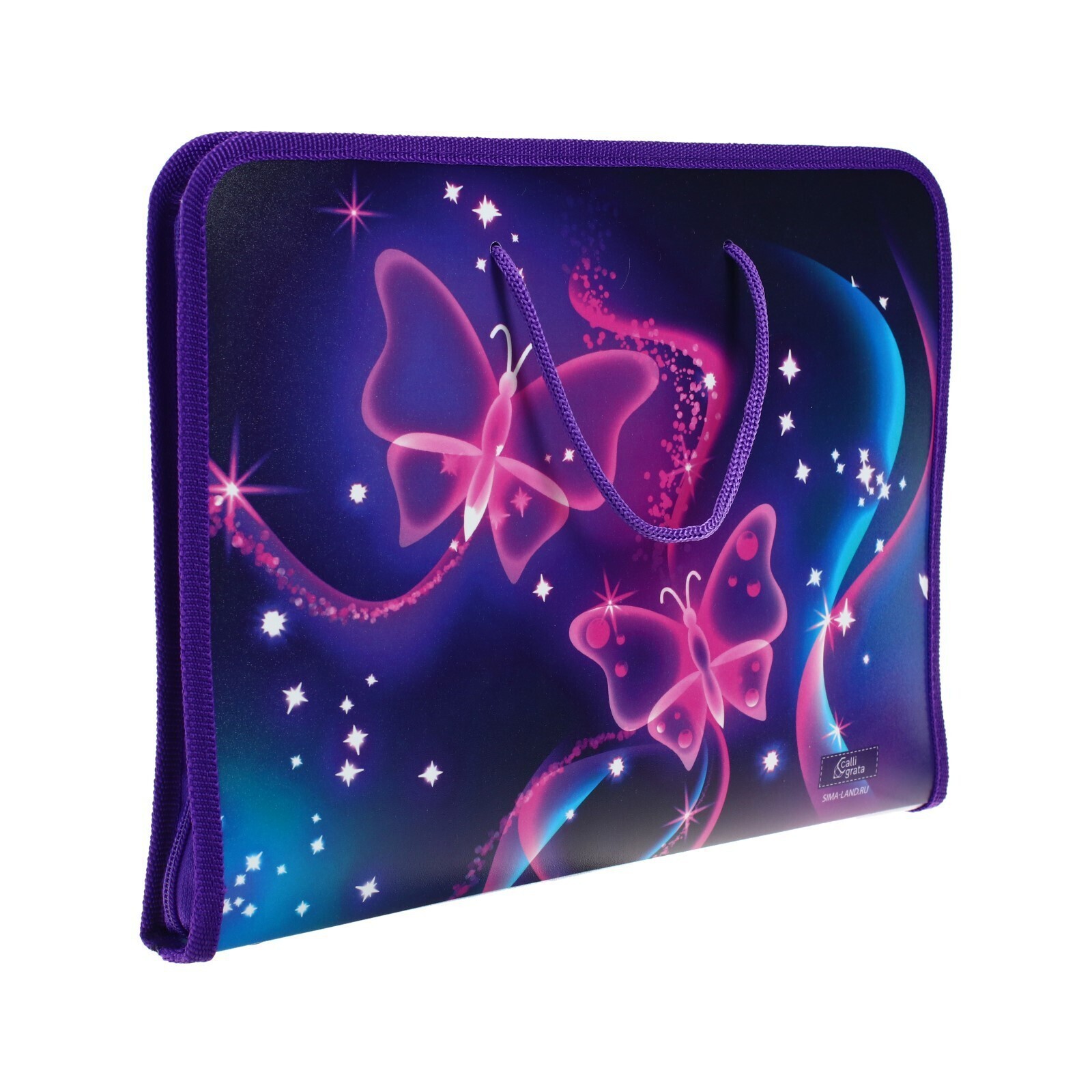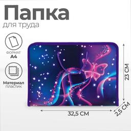 Папка для труда А4 с ручками, 325 х 230 х 25 мм, молния вокруг, пластиковая, ПТР-6 "Бабочки"