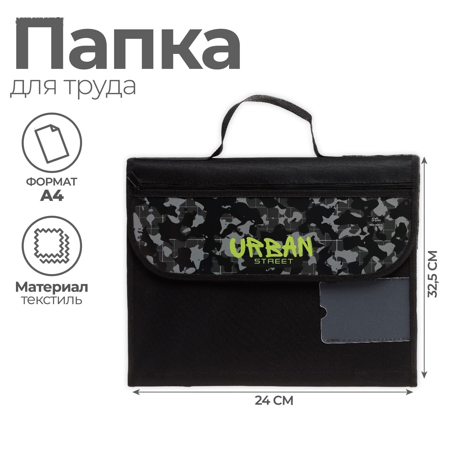 Папка для труда А4, 325 х 240 мм, с ручками, раскладная на липучке, текстильная, ПТР-10, Calligrata "Камуфляж"