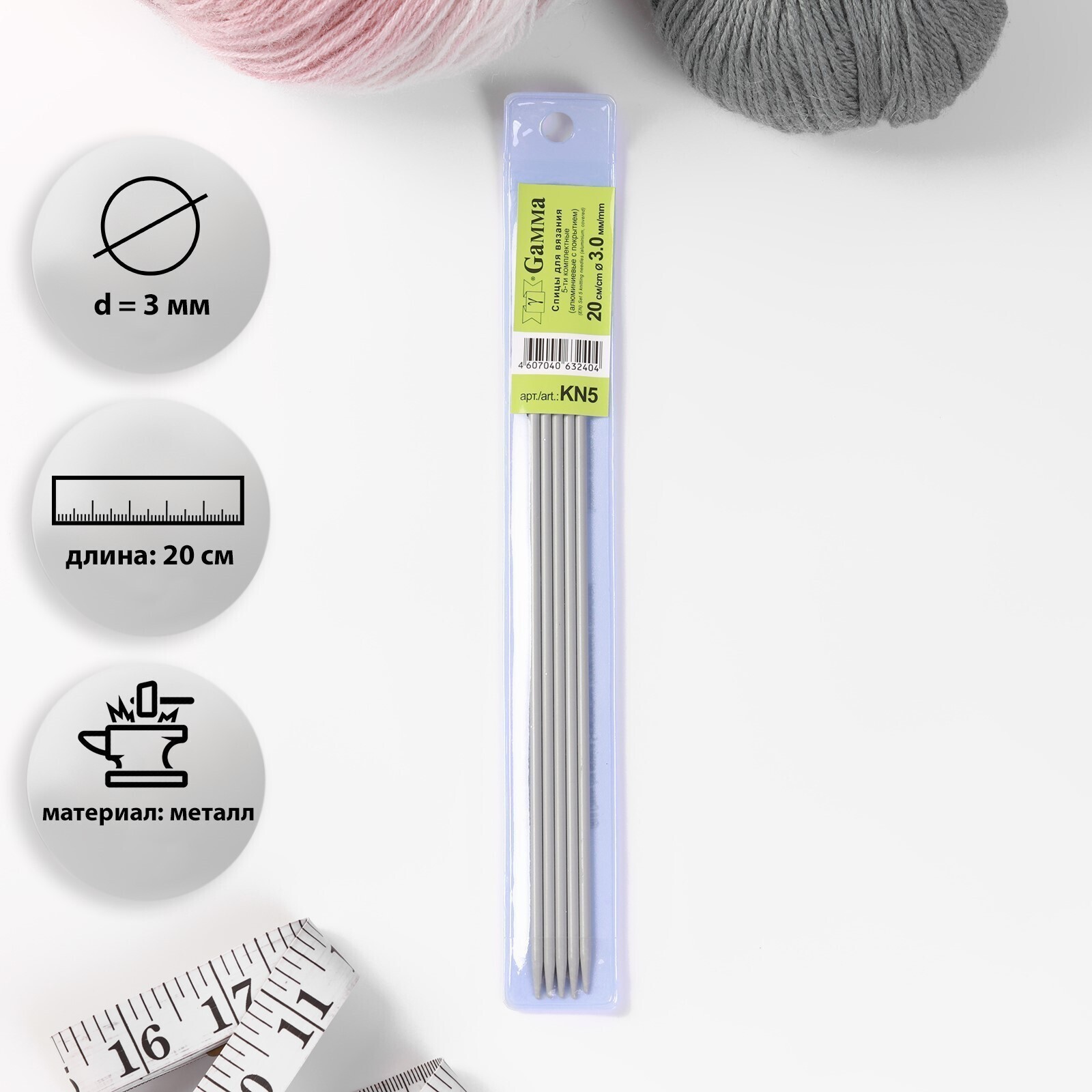 Спицы для вязания, чулочные, d = 3 мм, 20 см, 5 шт