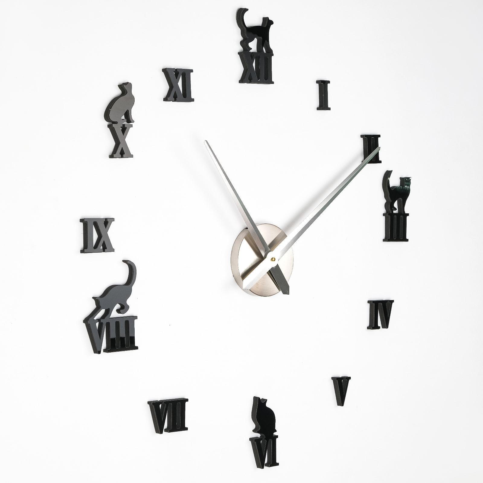 Часы-наклейка, серия: DIY, "Кошечки", плавный ход, d-120 см, 1 ААА, черные