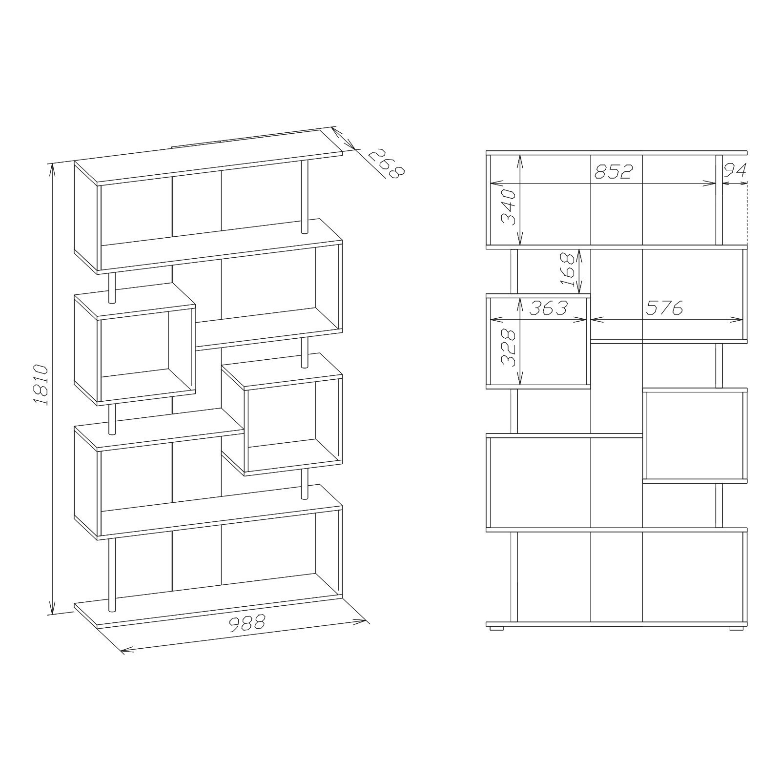Стеллаж, 988 × 268 × 1810 мм, цвет дуб сонома/белый