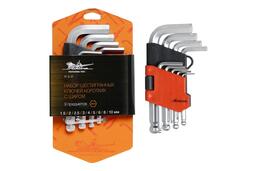Набор шестигранных ключей коротких с шаром 9 предметов (1.5,2,2.5,3,4,5,6,8,10мм) пласт.подвес (AT-9-17)