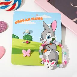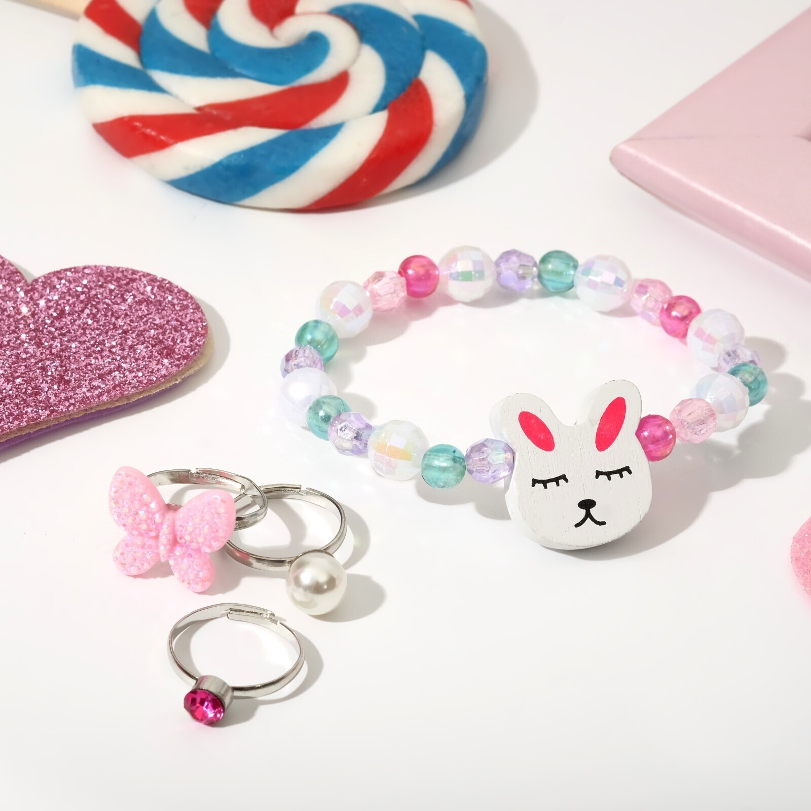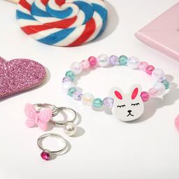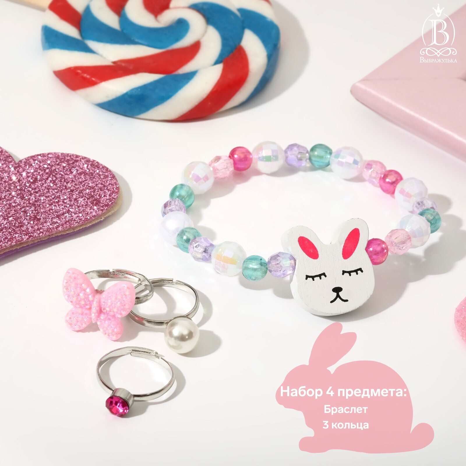 Набор детский "Выбражулька" 4 пред-та: браслет, 3 кольца, трафарет зайчик, цвет МИКС
