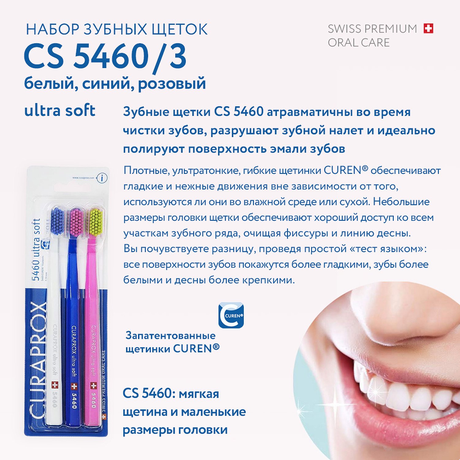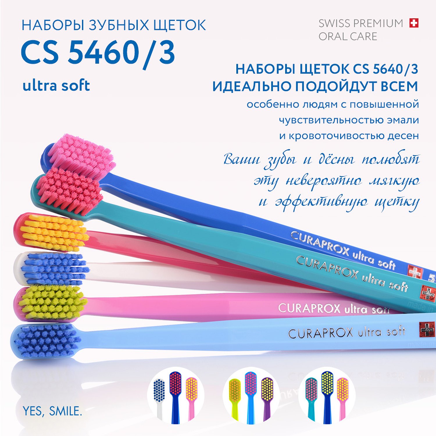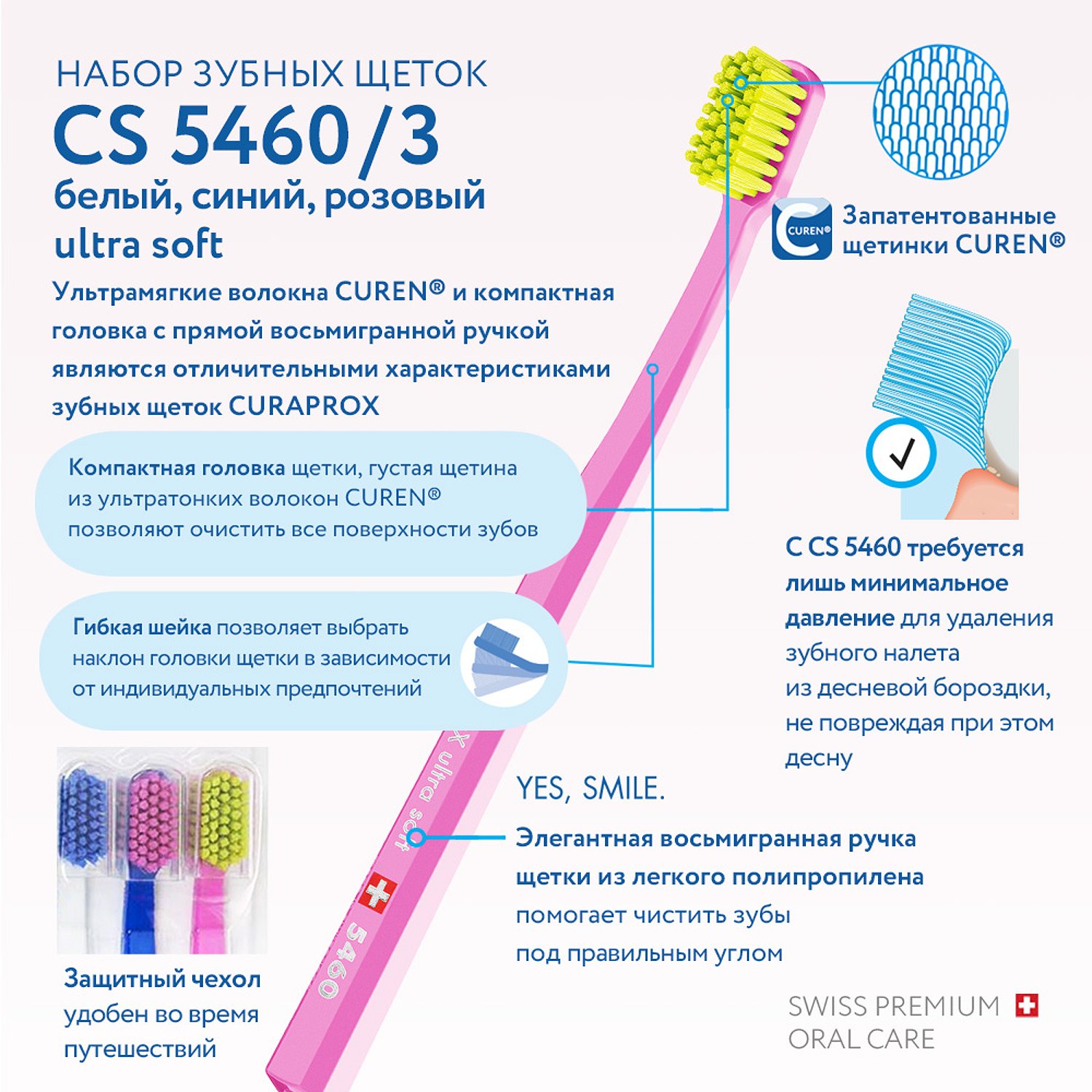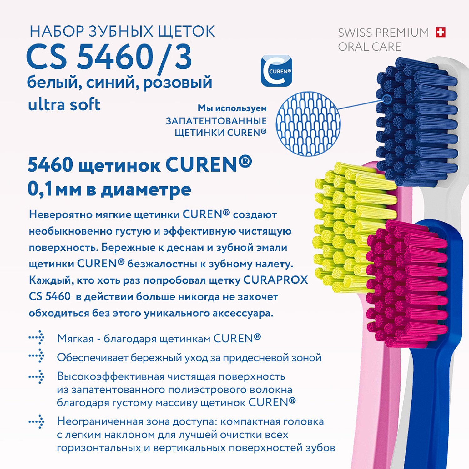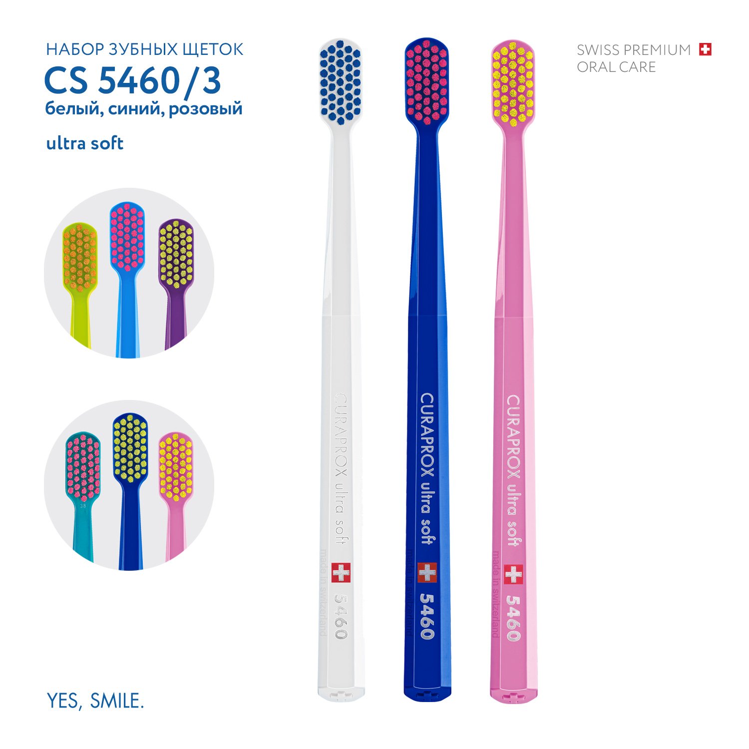 Набор зубных щеток Curaprox ultrasoft 3 шт белый-синий-розовый CS5460/3 БСИР