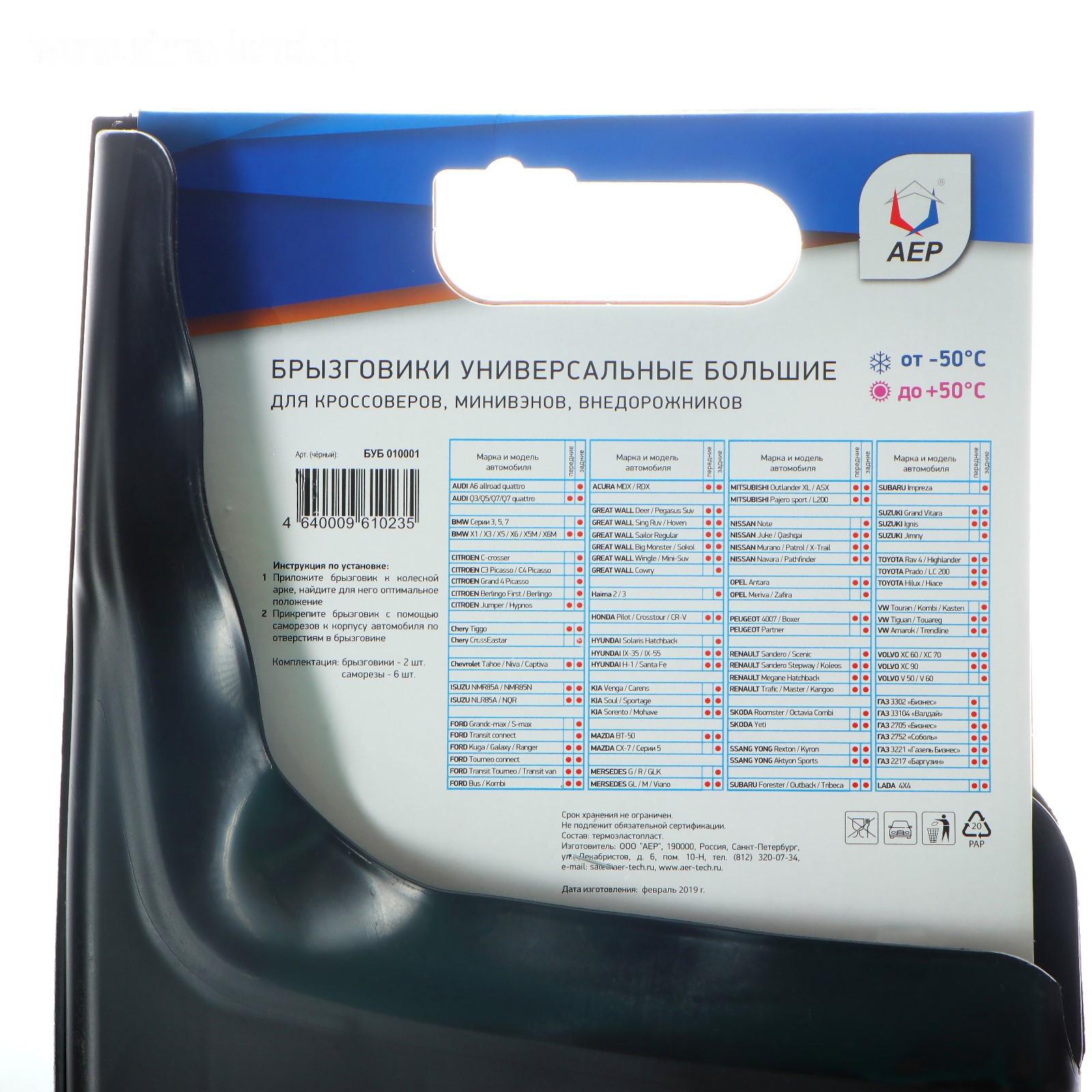 Брызговики универсальные АЕР, большие, чёрные, набор 2 шт