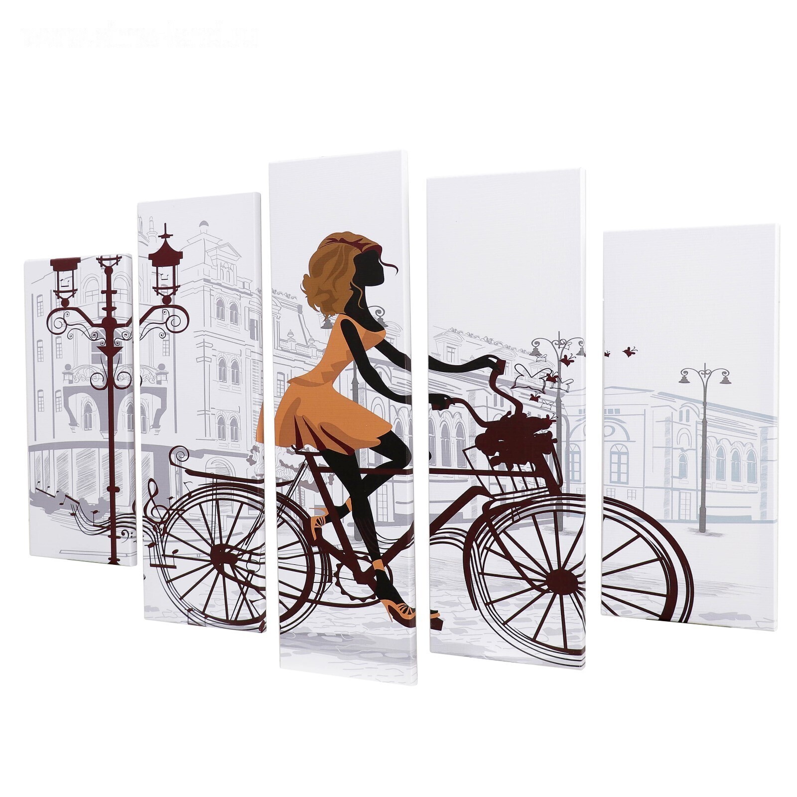 Модульная картина "Француженка" (2-23х52; 2-24х70; 1-24х80) 120х80см