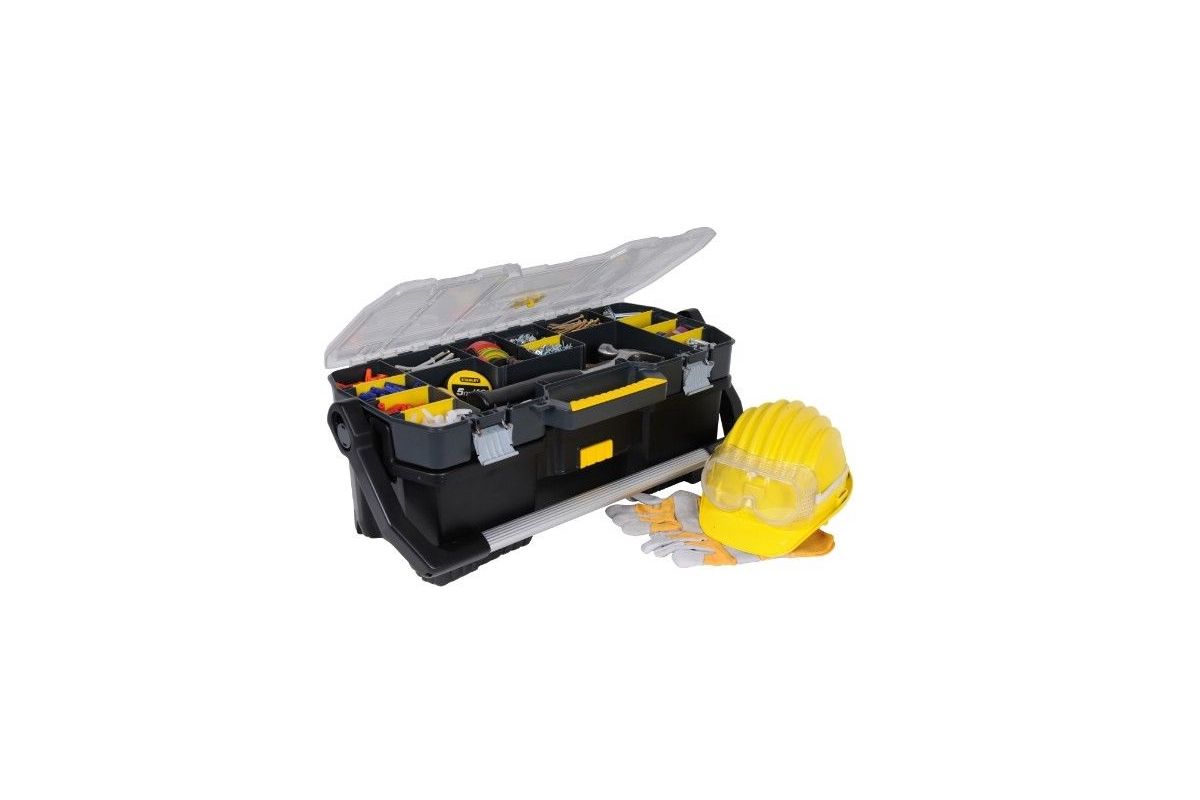 Открытый профессиональный пластмассовый ящик со съемным органайзером ''Stanley'' 24''.