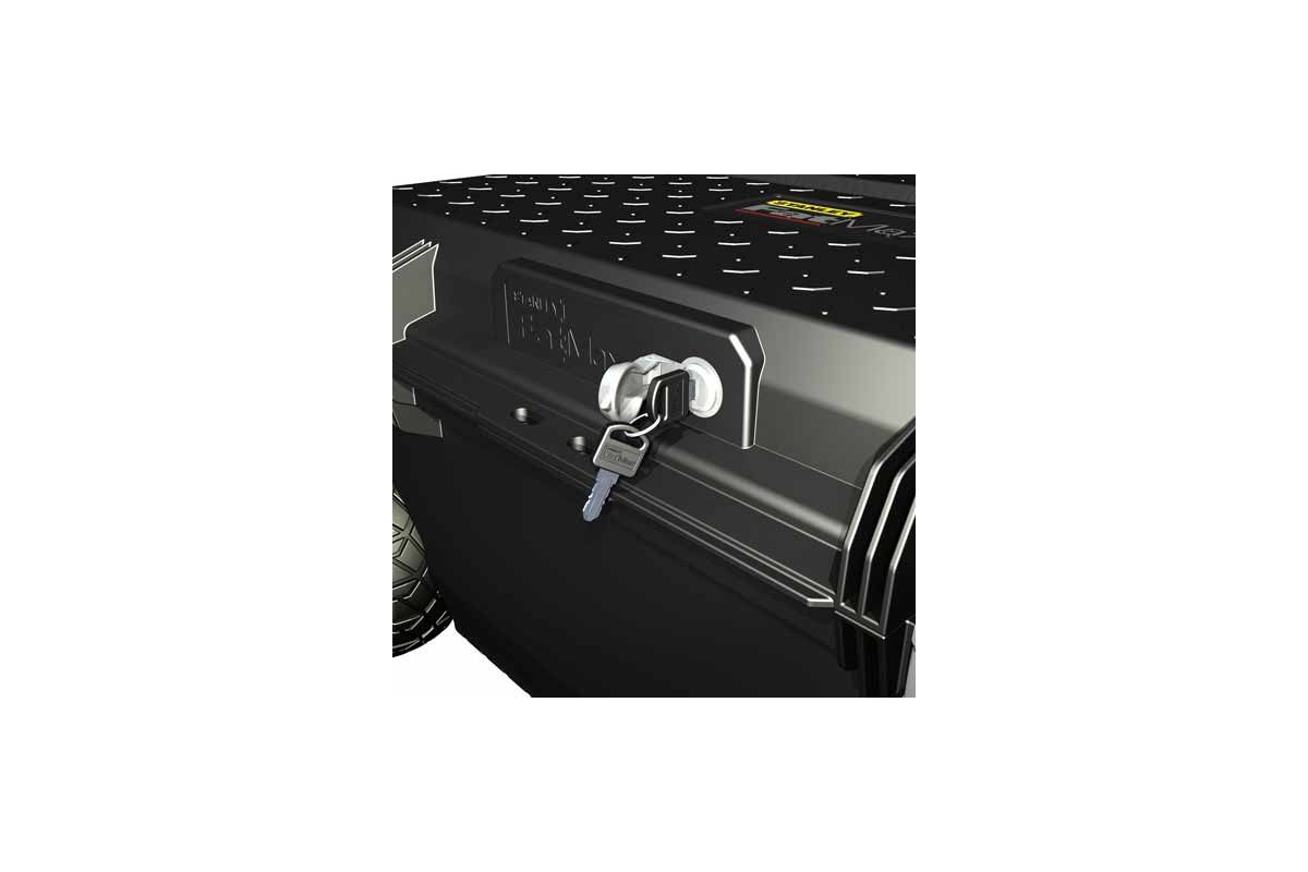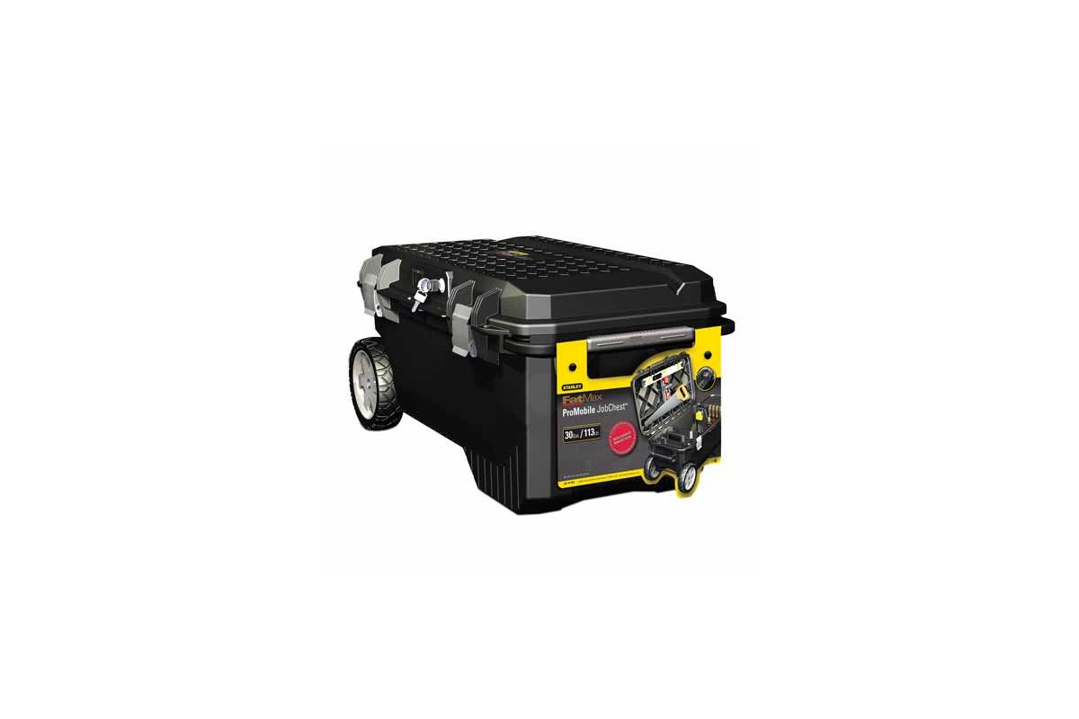 Ящик большого объема с колесами ''FatMax Promobile Job Chest'' пластмассовый профессиональный. С внутренней стороны крышки имеются крепежные элементы типа ''бабочка'' для крепления уровня, ножовки или аксессуаров.Водозащитное уплотнение по периметру ящика обеспечивает отличную защиту содержимого.