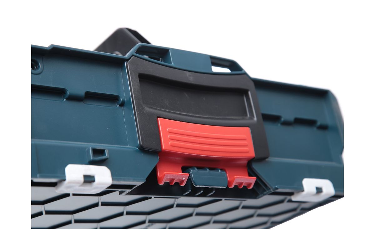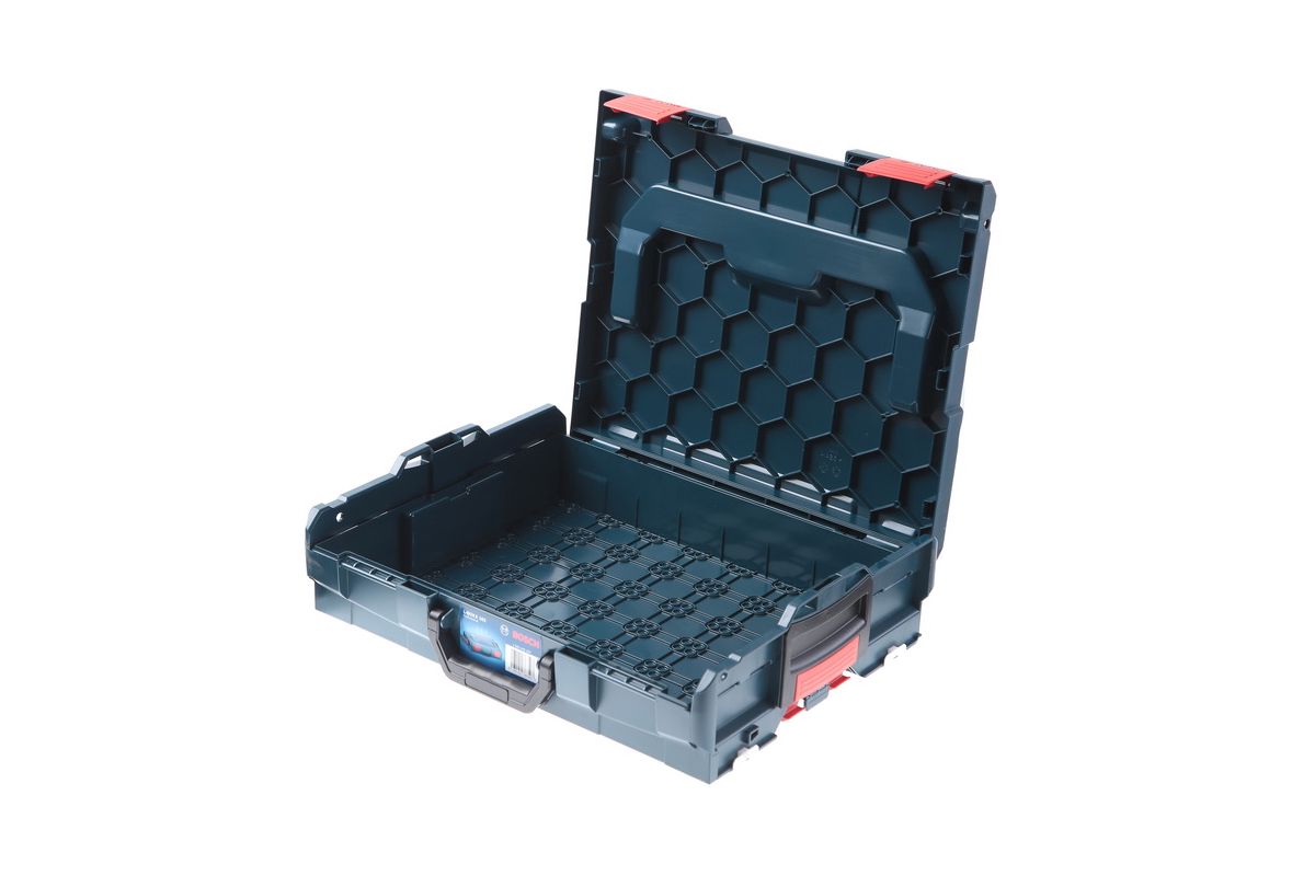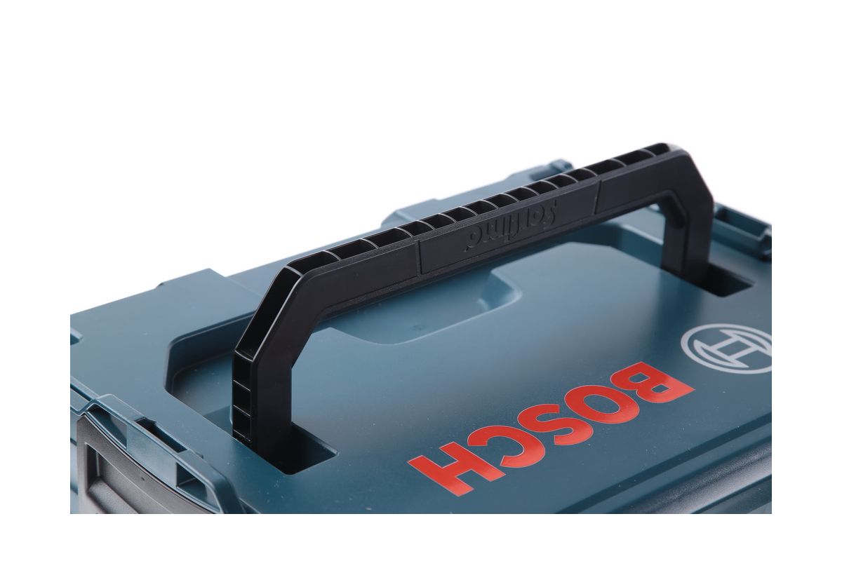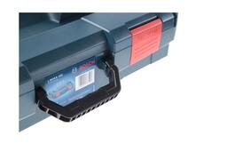 BOSCH L-BOXX 102 создан специально для фирменной техники BOSCH и выдерживает нагрузку до 100 кг. Корпус выполнен из прочного толстостенного пластика и оснащен крепкими защелками. Модель полностью совместима с системами эргономичной транспортировки Sortimo с фиксаторами Easy-Klick, что значительно упрощает перемещение чемодана.