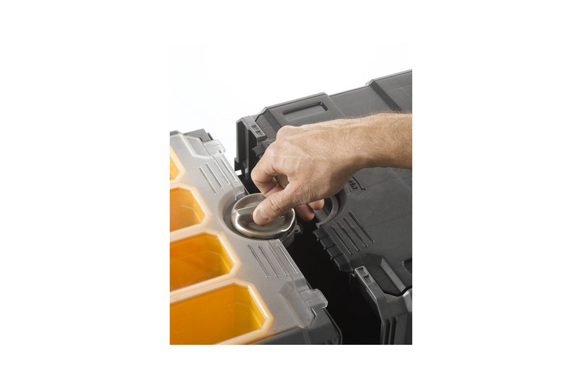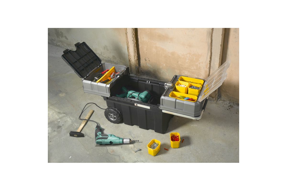 Центральное автоматическое запирающее устройство Встроенный органайзер со съемными отсеками двух размеров на крышке Большие отсеки для ручных инструментов со съемной перегородкой Роликовые направляющие для полного раскрытия и удобного доступа