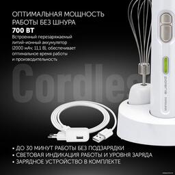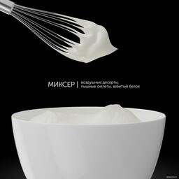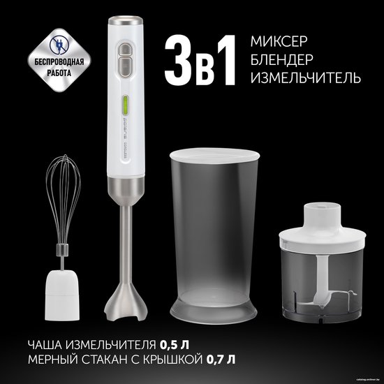 • Комплектация Блендерная насадка – 1 шт.Венчик - 1 шт.Переходник венчика – 1 шт.Стакан – 1 шт.Крышка для стакана– 1 шт.Крышка измельчителя – 1 шт.Нож измельчителя – 1 шт.Чаша измельчителя – 1 шт.Подставка для аксессуаров – 1 шт.Зарядное устройство (адаптер) с USB кабелемРуководство по эксплуатации – 1 шт.