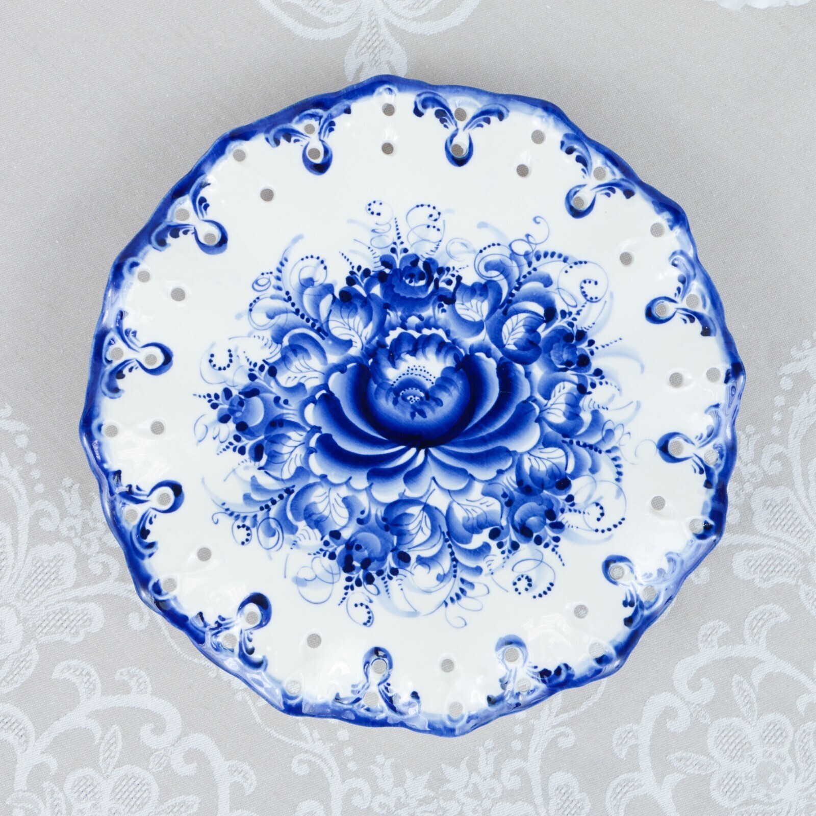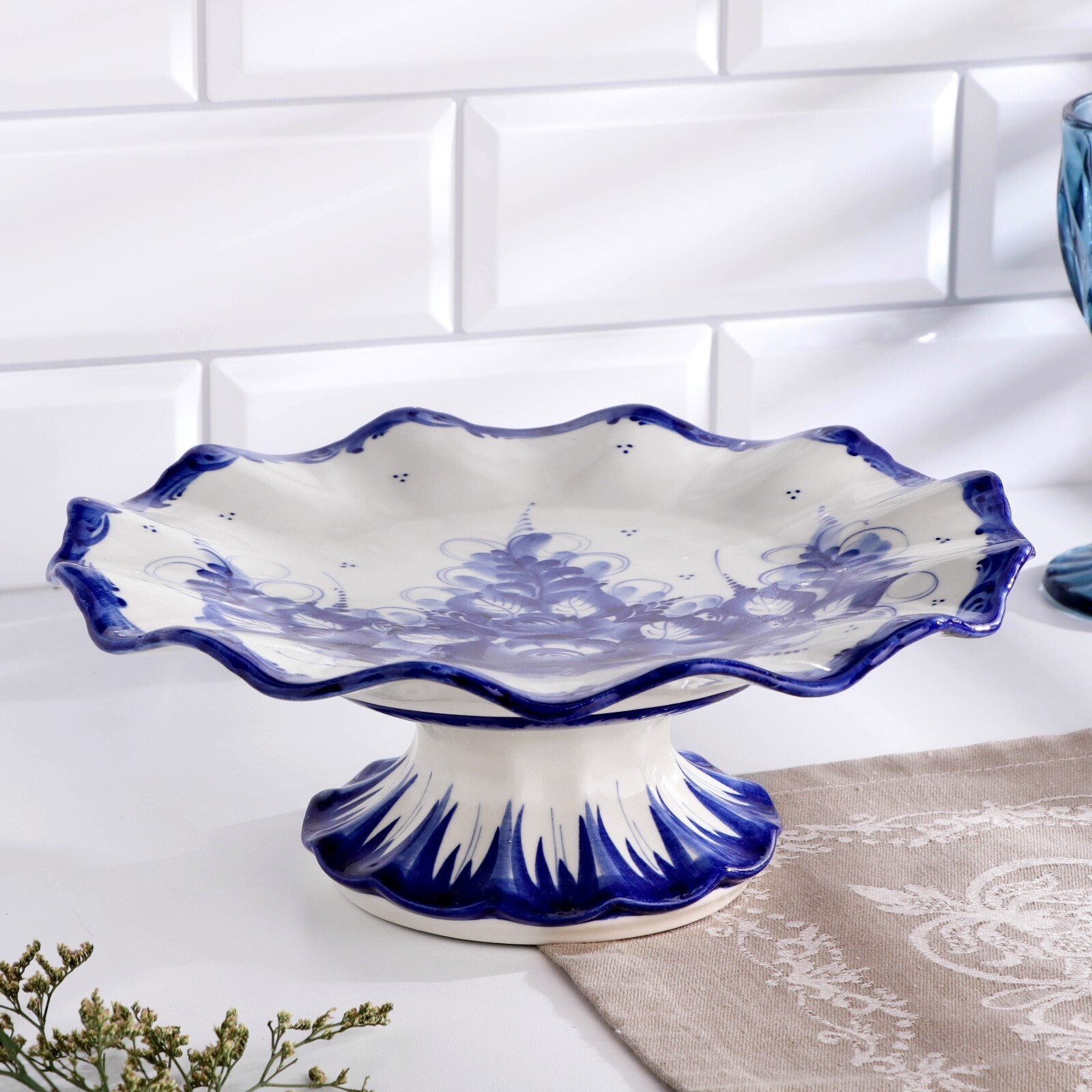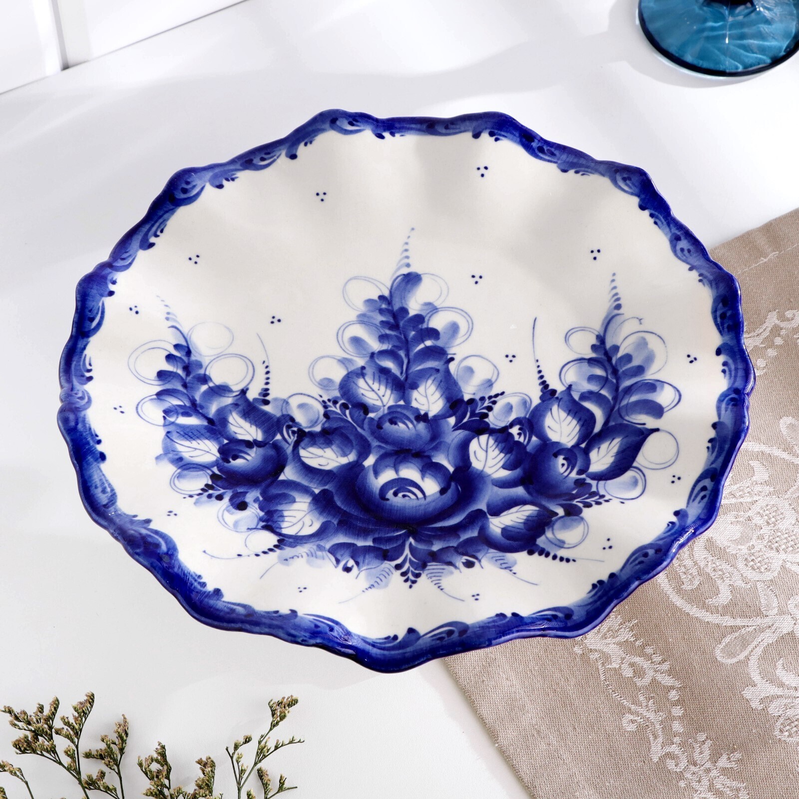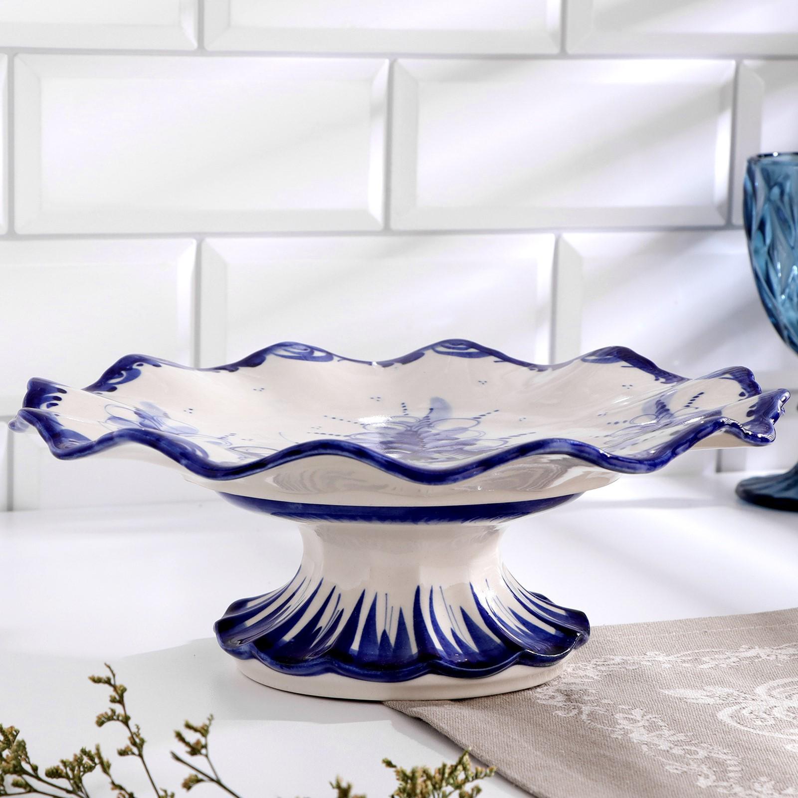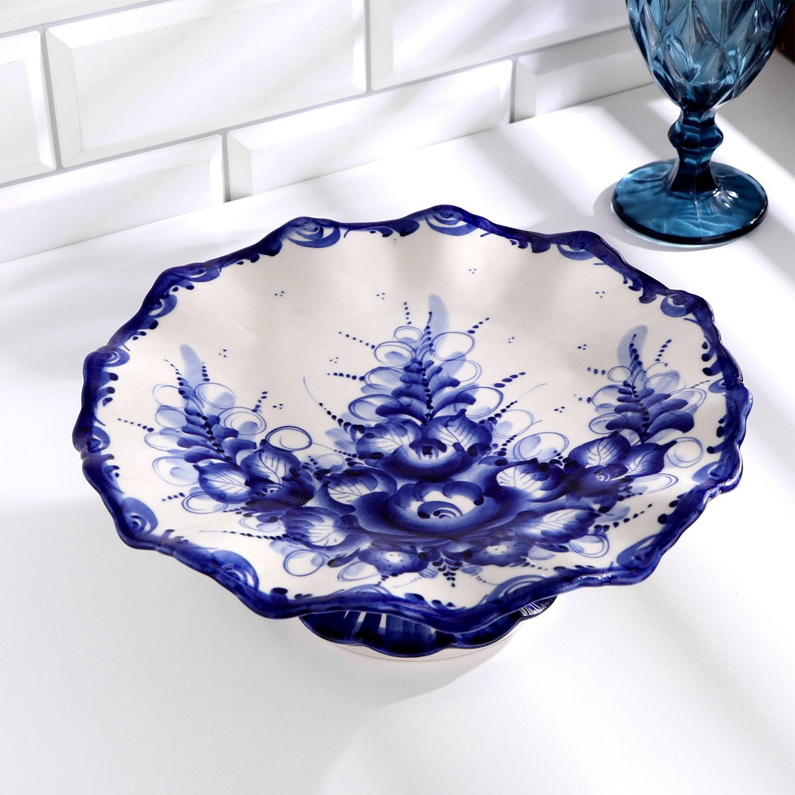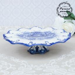 Тортница "Кружево", гжель, фарфор, d=26 см