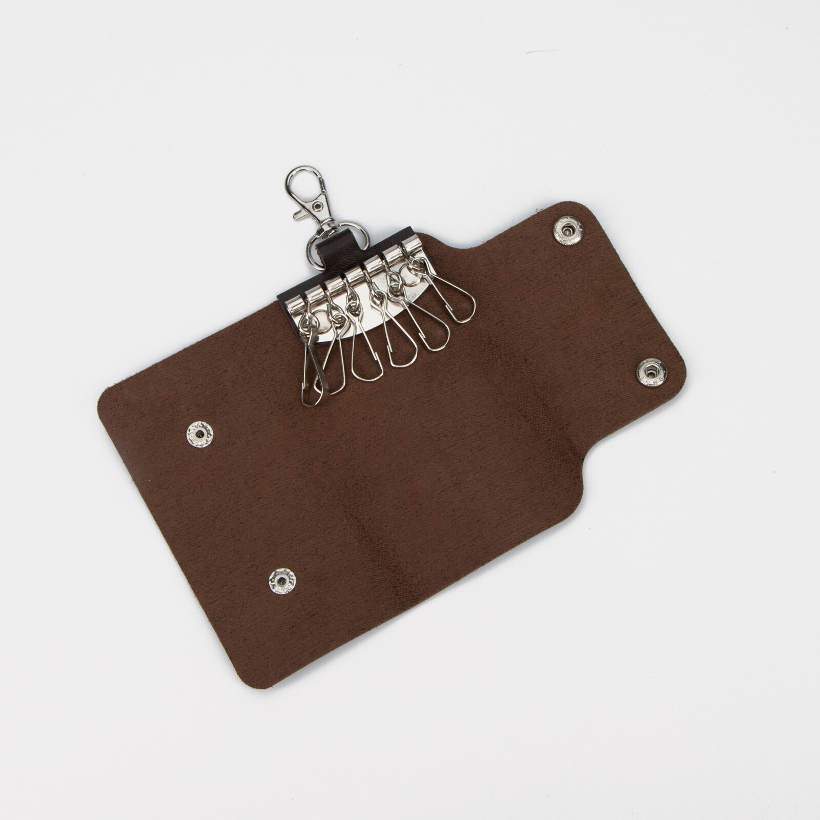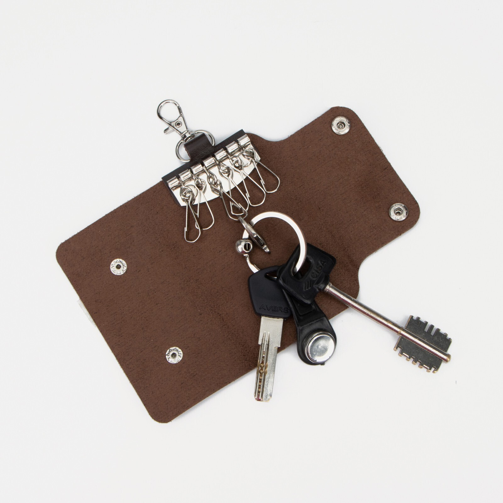 Ключница на кнопках, длина 11 см, 7 карабинов, цвет коричневый