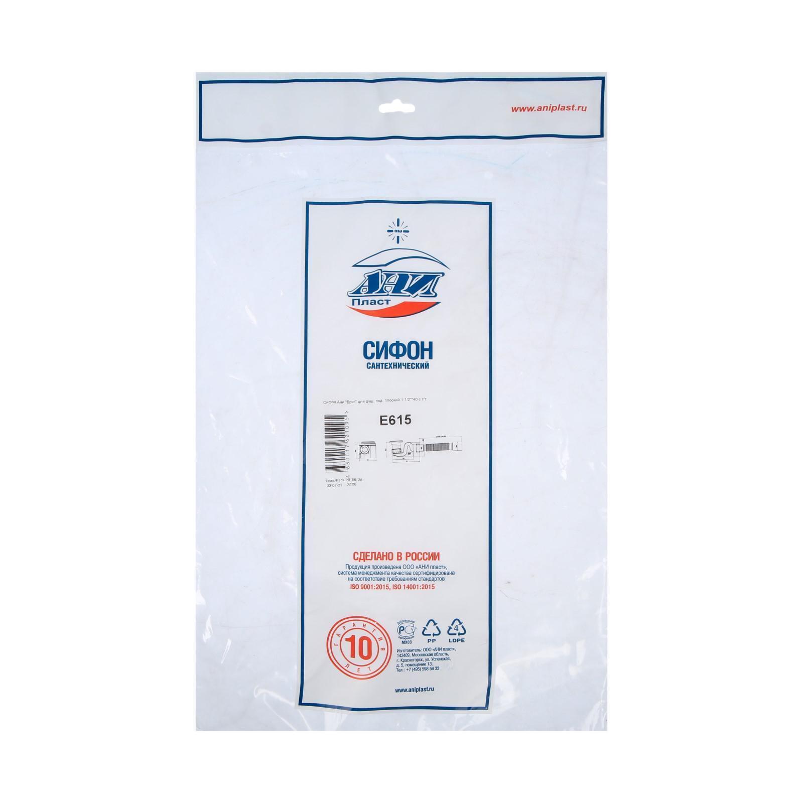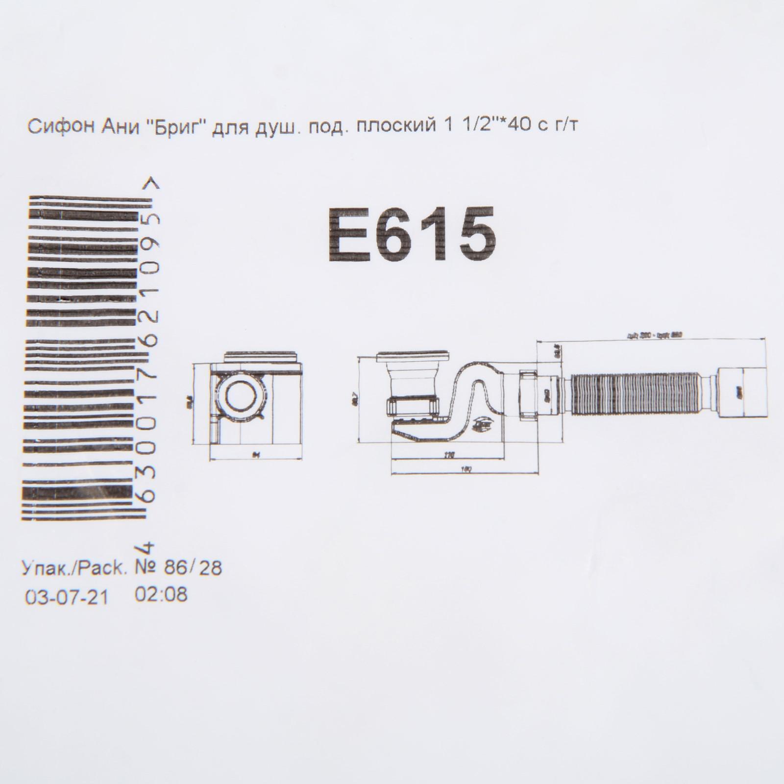 Сифон для душевого поддона "АНИ Пласт" Бриг E615, 1 1/2", плоский, с гофротрубой 40 x 50 мм