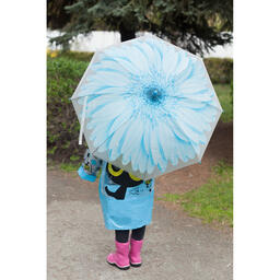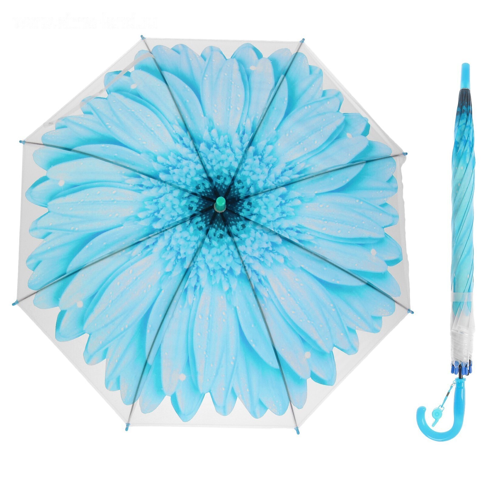 Зонт-трость «Гербера», полуавтоматический, со свистком, R=41см, цвет голубой