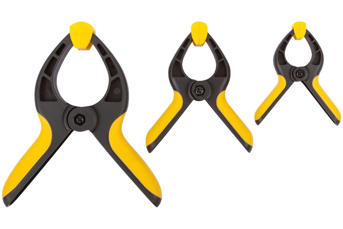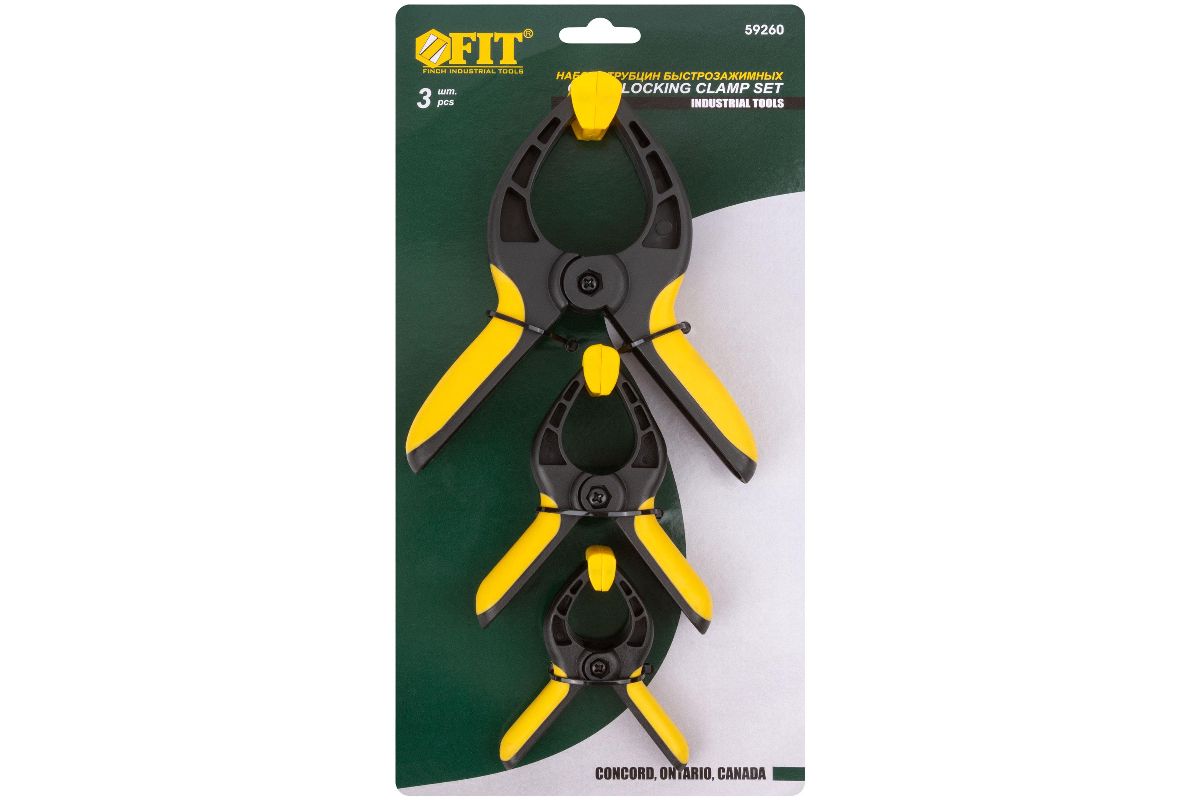 Набор инструментов FIT 59260 струбцин набор 3 шт (75x40мм/100х50мм(150x80мм) Быстрозажимные. Материал: нейлон, обрезиненные ручки. Упаковка: картонный подвес.