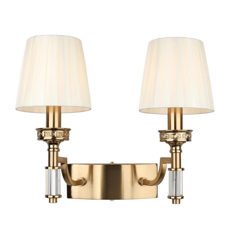 Светильник настенный металлический. Цвет покрытия-бронза. Плафоны из ткани. Бра выполнено в классическом стиле, декорировано хрусталем. Используется в качестве дополнительного освещения. В бра используется 2 лампы накаливания по 40 Ватт, площадь освещения 4 кв.м. Если использовать энергосберегающие лампы, можно увеличить площадь освещения. Способ крепления: планка прикручивается к стене. В комплекте: гарантийный талон, схема сборки, планка и крепежные саморезы.