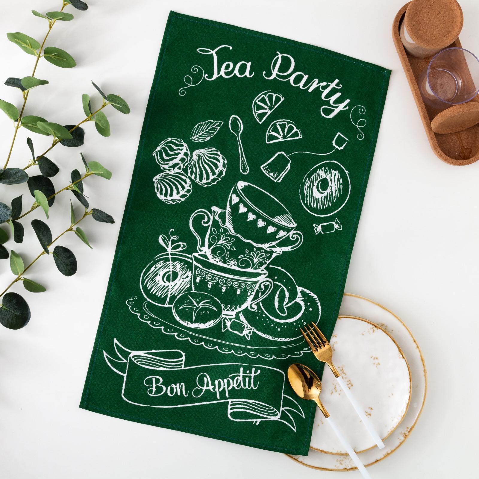 Полотенце рогожка Зелёная чашка 35х60 см, зелёный, хлопок 100%, 150г/м2