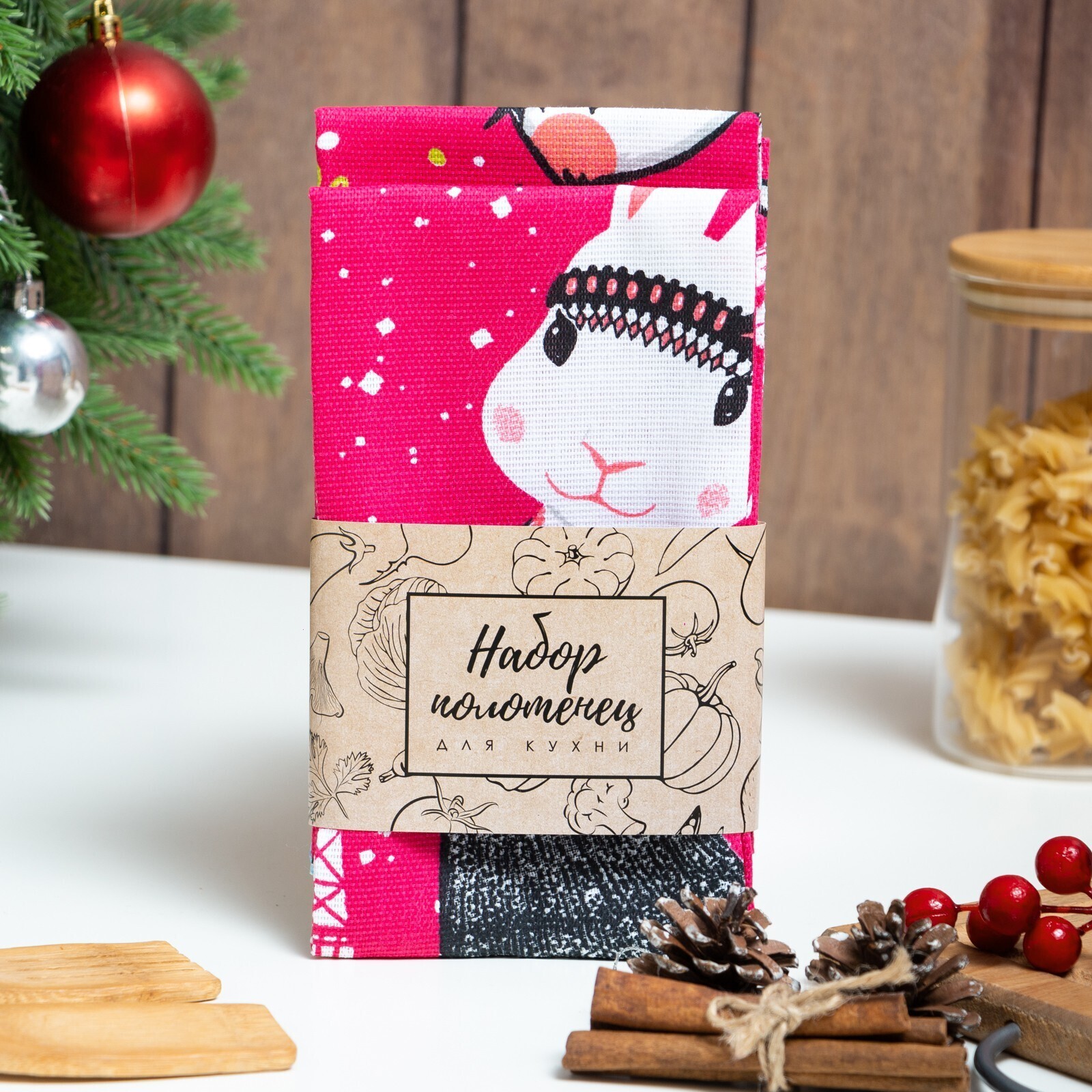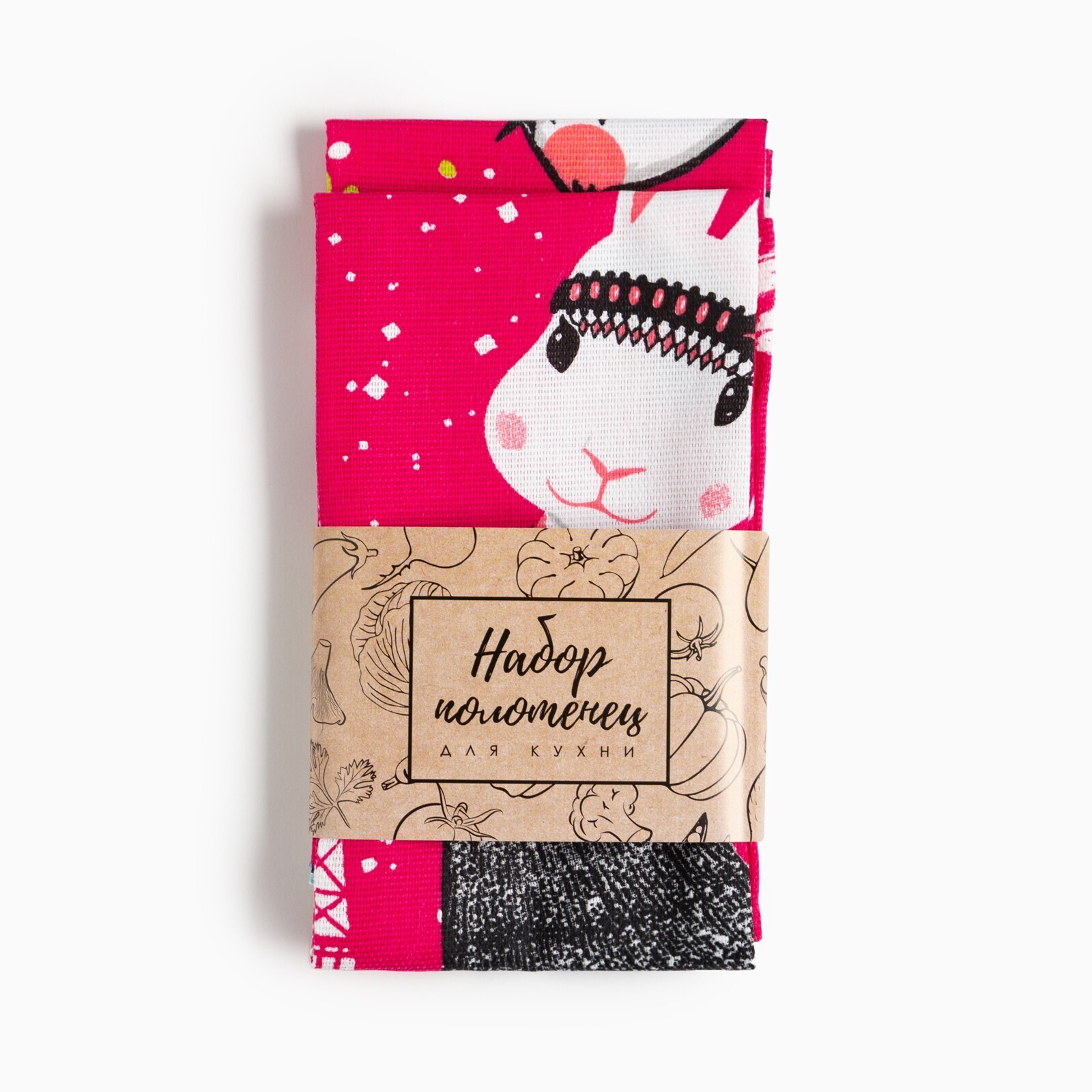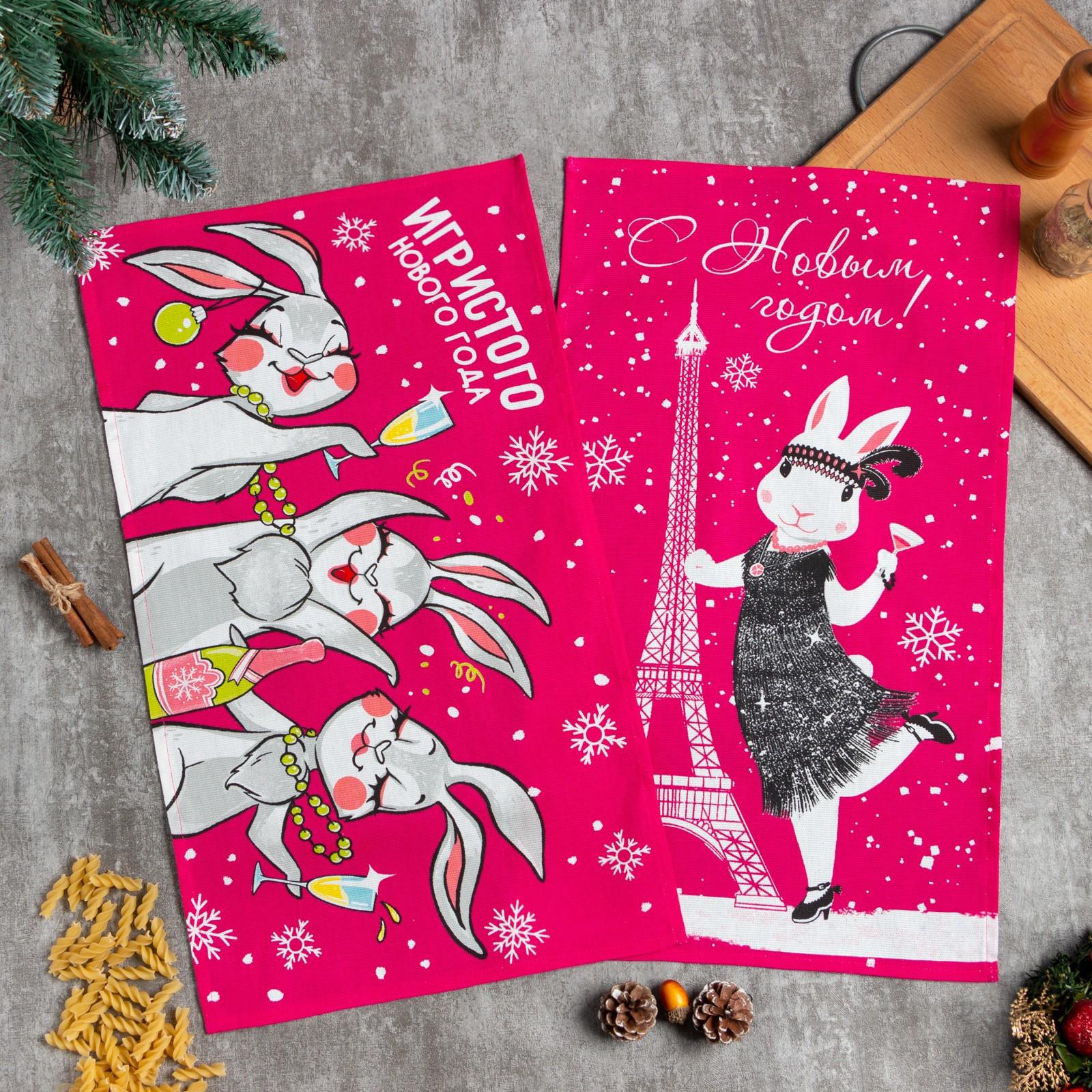 Набор кухонных полотенец Доляна Hares party 35х60 см - 2 шт., 100% хл