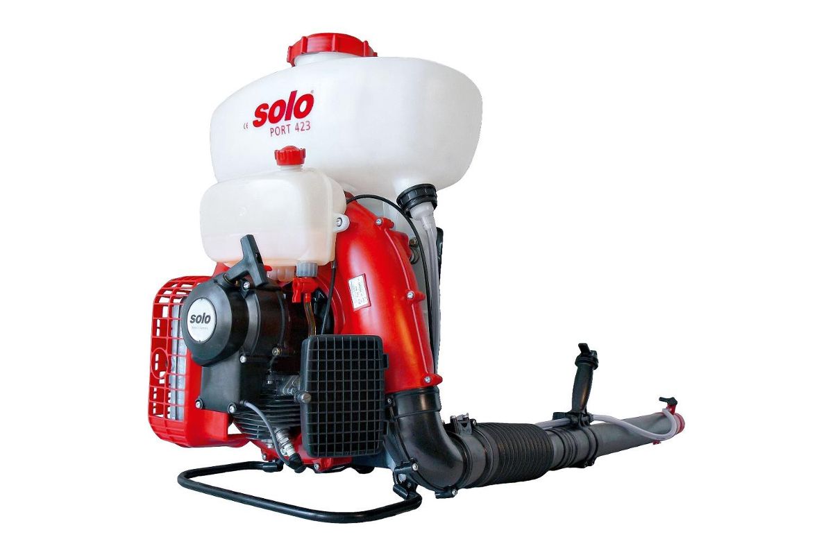 SOLO 423 PORT — мощная профессиональная модель опрыскивателя. Помимо ухода за растениями, применяется для дезинфекции и борьбы с паразитами. Также может использоваться как воздуходув. Прибор удобен для ухода за высокими деревьями (высотой до 7-9 метров — при установке вспомогательного насоса). Одна из его главных особенностей — высокая производительность выдува (1400 м3/сек). Прибор удобно переносить по территории благодаря ременной оснастке.