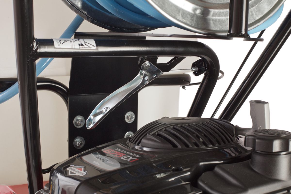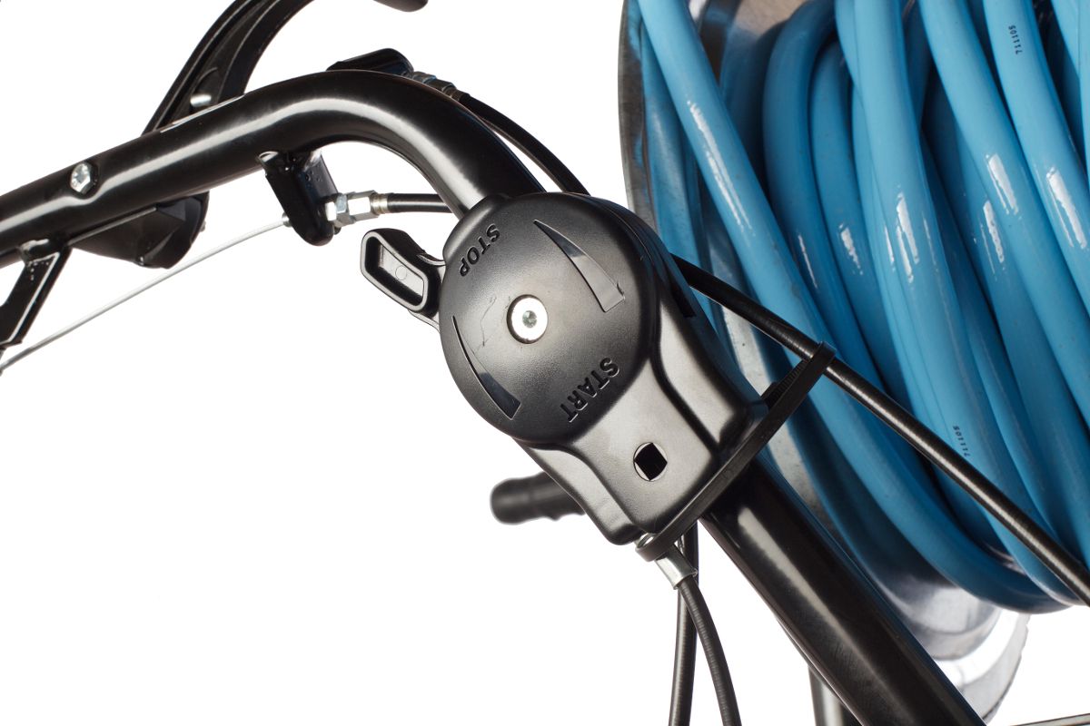 Есть барабан для сматывания шланга. Он не будет мешаться под ногами и не займёт много места при хранении.