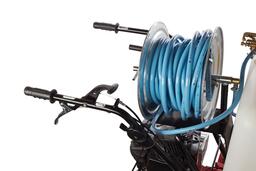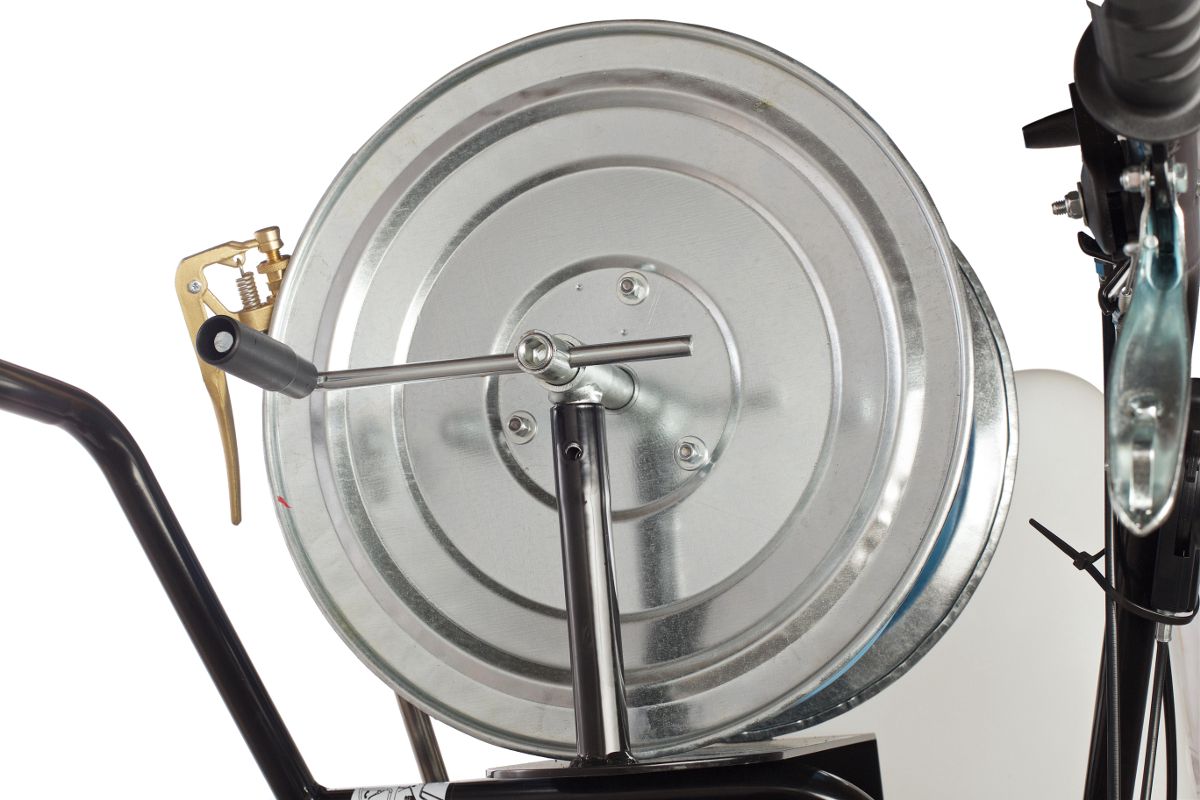 Длина шланга – 25 м. Удобно подбираться к деревьям и кустам, до которых опрыскиватель не сможет доехать.