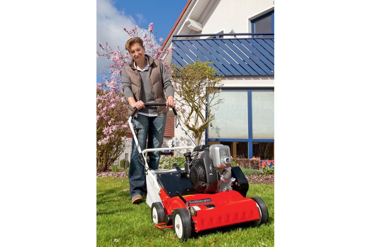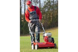 Профессиональный скарификатор Tielbuerger TV510. Двигатель – Honda GХ160, 5,5 л.с. Ширина захвата – 45 см. Центральная бесступенчатая регулировка рабочей глубины. Производительность – 1500 м2/ч. Система защиты ножей от повреждений. Стальные колеса на шарикоподшипниках. Система постоянной очистки колес от налипшей травы и мха. Дополнительная ручка для переноски. Вес – 53 кг. Гарантия – 2 года.