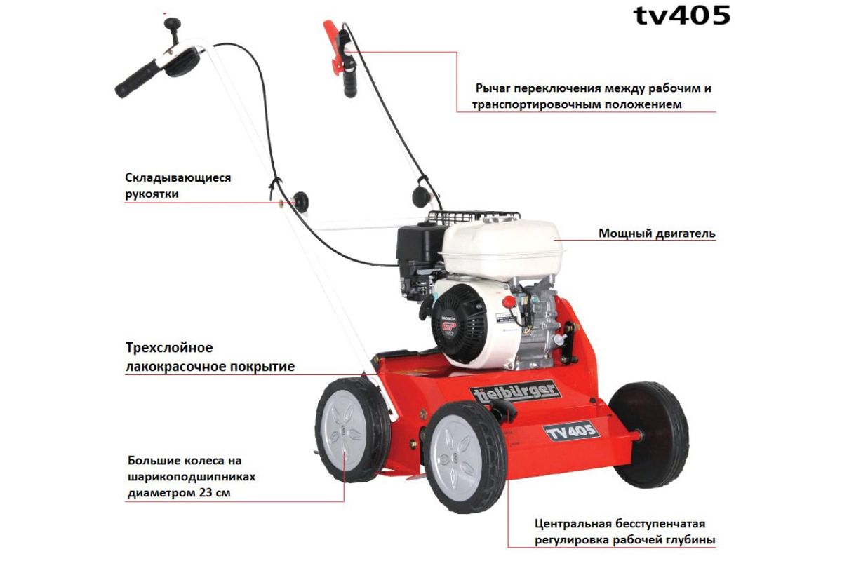 Скарификатор TIELBUERGER TV405 (AI-044-001TS) проф. 5л.с 38см 15мм Honda GP160