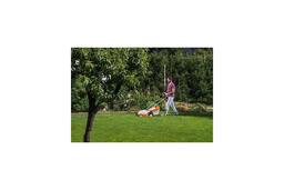 Четыре крупных обрезиненных колеса улучшают манёвренность газонокосилки. Самоходная конструкция облегчает работы в саду.