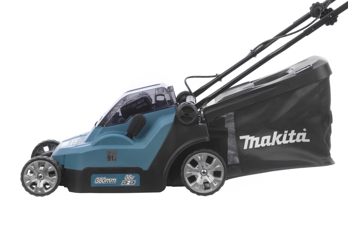 Аккумуляторная газонокосилка с декой из композитных материалов и шириной кошения 38 см. Работает от двух аккумуляторов 18 В LXT, обеспечивающих рабочее напряжение 36 В. Тринадцать ступеней центральной регулировки позволят выбрать оптимальную высоту кошения. Колеса оснащены шариковыми подшипниками. Травосборник оснащен индикатором заполнения, максимальная вместимость 40 л.