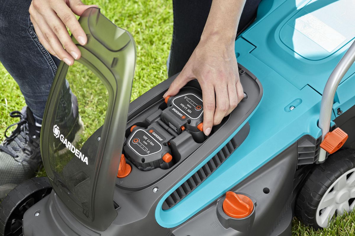 Газонокосилка аккумуляторная Gardena PowerMax Li-18/32 (05039-20.000.00) гарантирует идеальные результаты кошения, благодаря мощному двигателю PowerPlus и сверхострым мульчирующим ножам двойной закалки DuraEdge. Мощность: 2 литий-ионных батарей 18 В / 2.6 Ач. Ширина кошения - 32 см, площадь до 230 см 2 , объем травосборника - 30 л. Центральная регулировка высоты кошения : 10 положений: 20-60 мм. Вес - 9,3 кг. Рукоятка ErgoTech. Бесщеточный двигатель PowerPlus. Индикатор уровня заполнения травосборника.