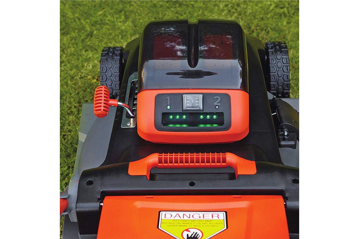 Премиальная аккумуляторная газонокосилка колесная 3-в-1: мульчирование, сбор в травосборник, выброс на сторону. 54 В, 2 аккумулятора DUALVOLT (54 В/18 В) 2.5Ач Li-Ion. Индикаторы остаточной емкости каждой батареи на деке. Сисема Autosense, поддерживающая постоянную скорость вращения ножа вне зависимости от нагрузки. Захват 48 см. Центральная регулировка высоты среза 38/ 48/ 58/ 68/ 78/ 88/ 100 мм. Система заходов для травы по краям деки EdgeMax позволяют скашивать траву вплотную к стене. Матерчатый травосборник 50 л. Мульчирующая заглушка и дефлектор бокового выброса в комплекте.