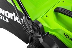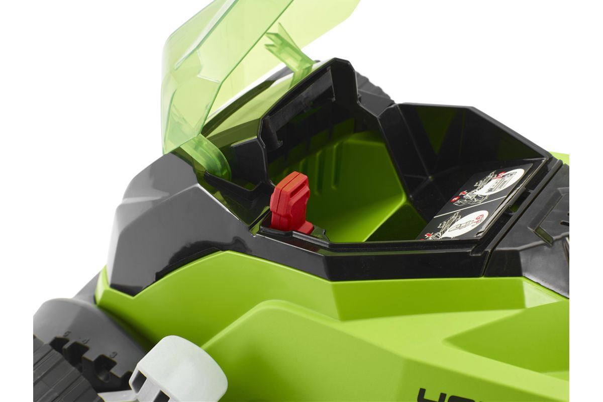 Газонокосилка оборудована аккумулятором G-MAX40. Он универсальный, подходит ко всему оборудованию GREENWORKS соответствующего вольтажа.