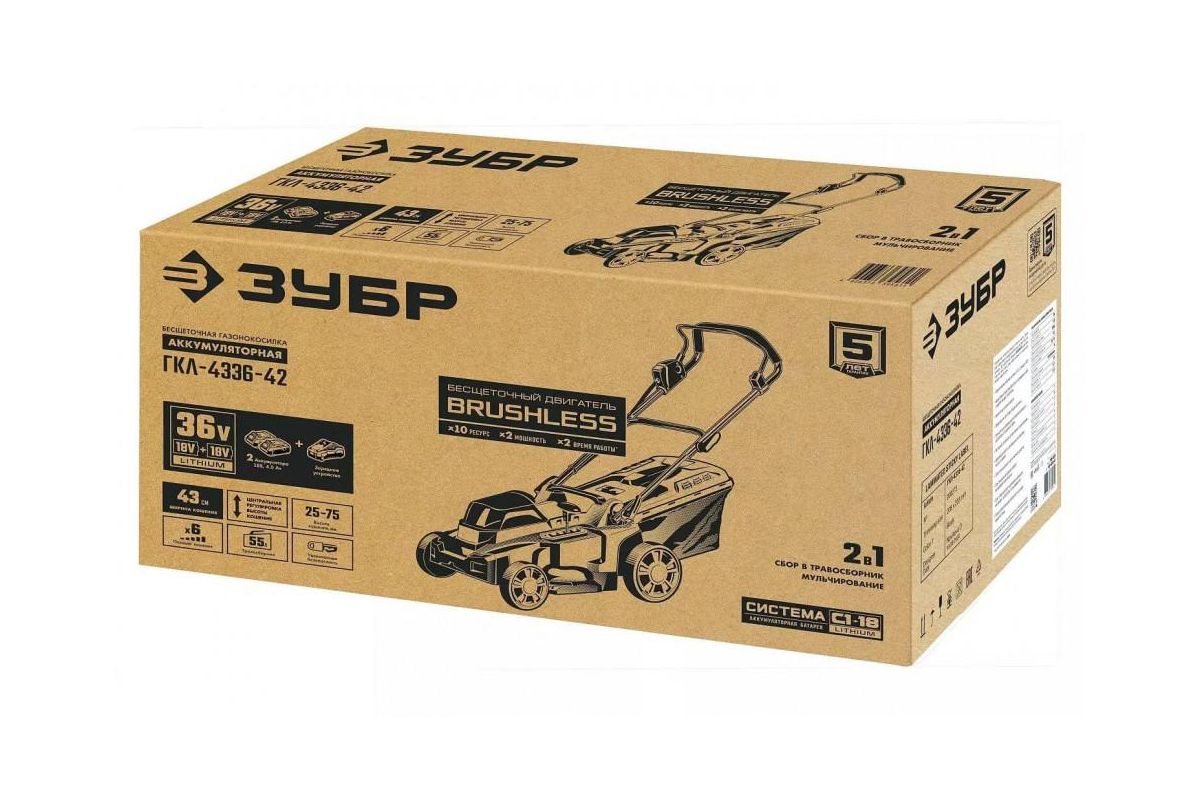 Газонокосилка бесщеточная ЗУБР ГКЛ-4336-42 36В, 2х18В АКБ (4Ач)