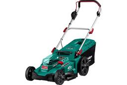 Мощный двигатель напряжением 36 В ускоряет процесс обработки, а увеличенная ширина 43 см кошения ускоряют работу