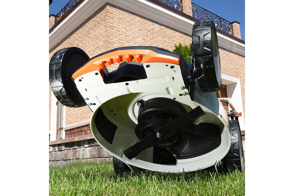 Газонокосилка аккумуляторная Daewoo DLM 5580Li имеет турбонож нож из высокопрочной стали не требует частой заточки благодаря специально подобранному углу атаки режущей кромки.