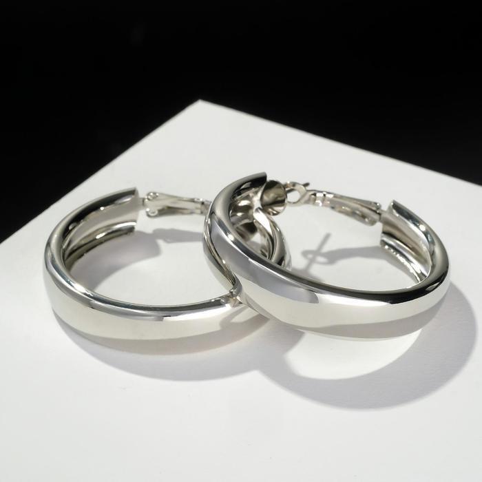 Серьги-кольца "Каньон" утолщённая линия, d=2,5, цвет серебро