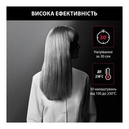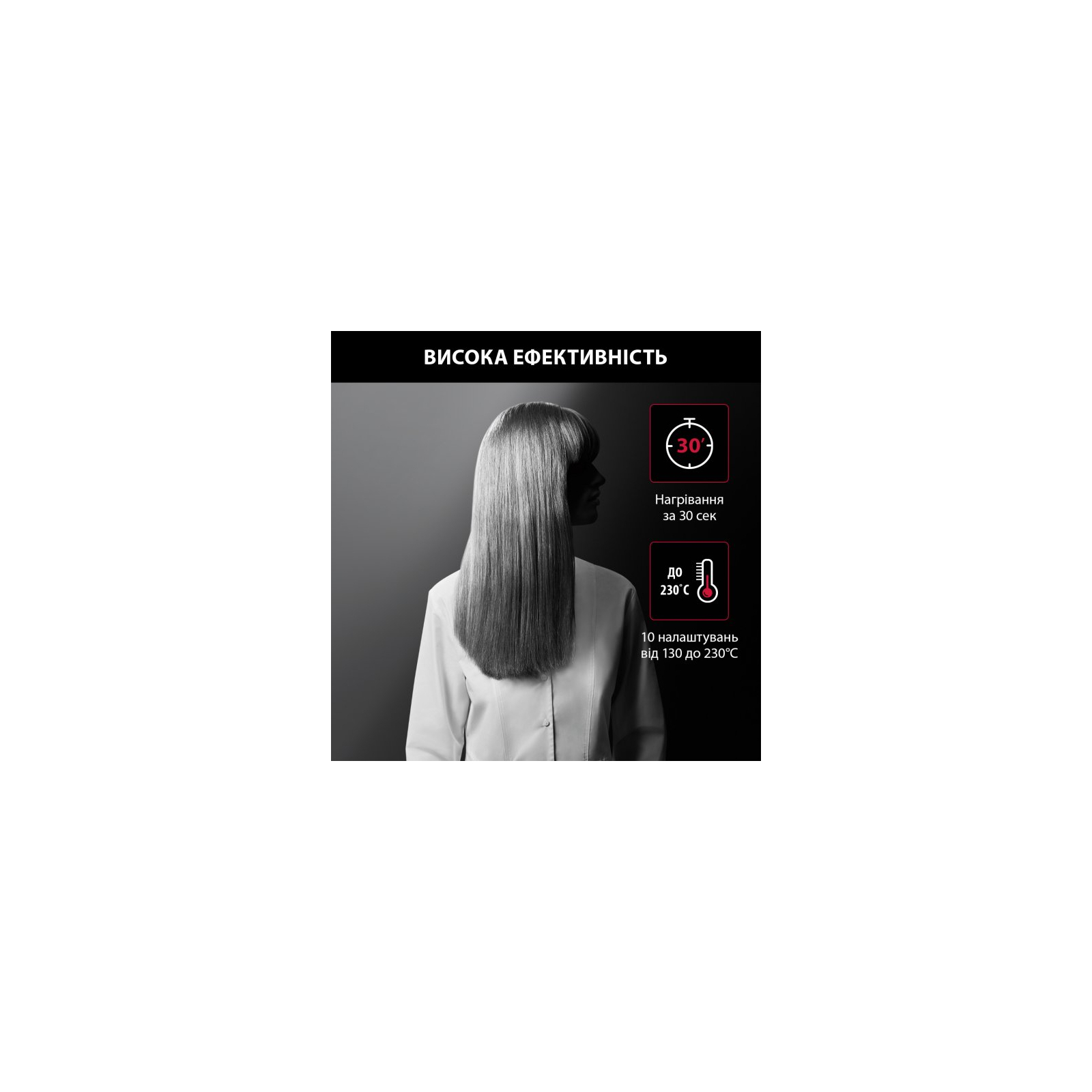 Високоефективний вирівнювач для волосся, що забезпечує ідеальний контроль та універсальність, має 10 простих температурних налаштувань від 130 до 230°C, що охоплюють широкий спектр типів волосся.