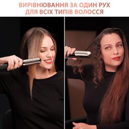 Ідеальне ковзання щетинок і випрямляча запобігає ламкості, а також посилює блиск волосся завдяки 100% збереженню кератину. Поверхня пластин забезпечує гладкий та сяйний блиск без перегрівання й пошкоджень.