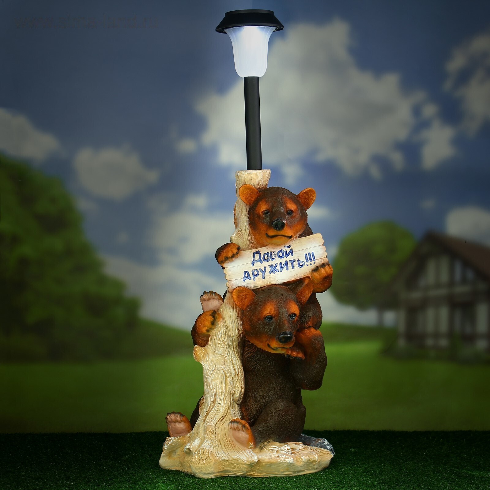 Садовый фонарь "Дерево: Два медведя" 33х29х52см