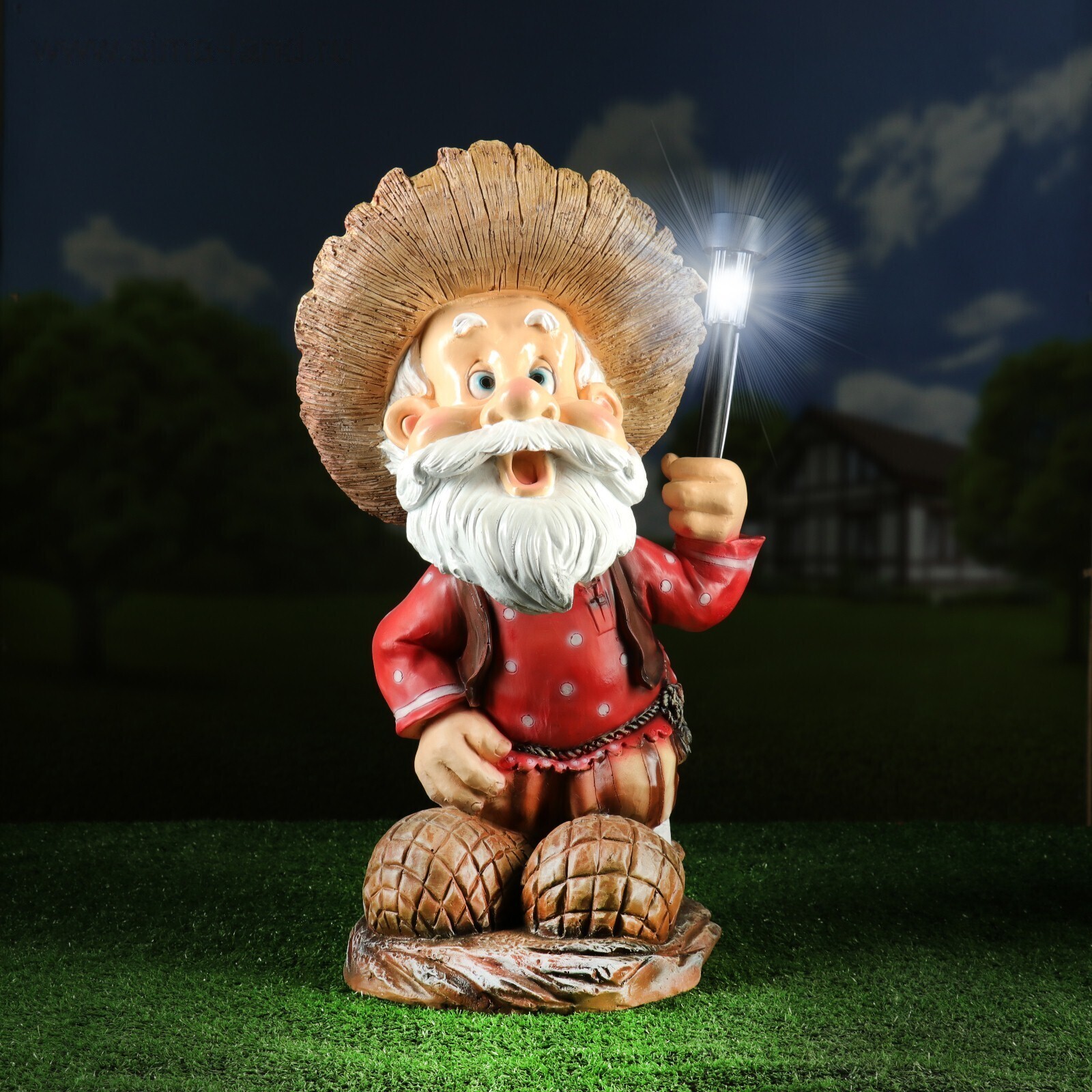 Садовый фонарь "Лесовик с фонарем" 30х36х58см