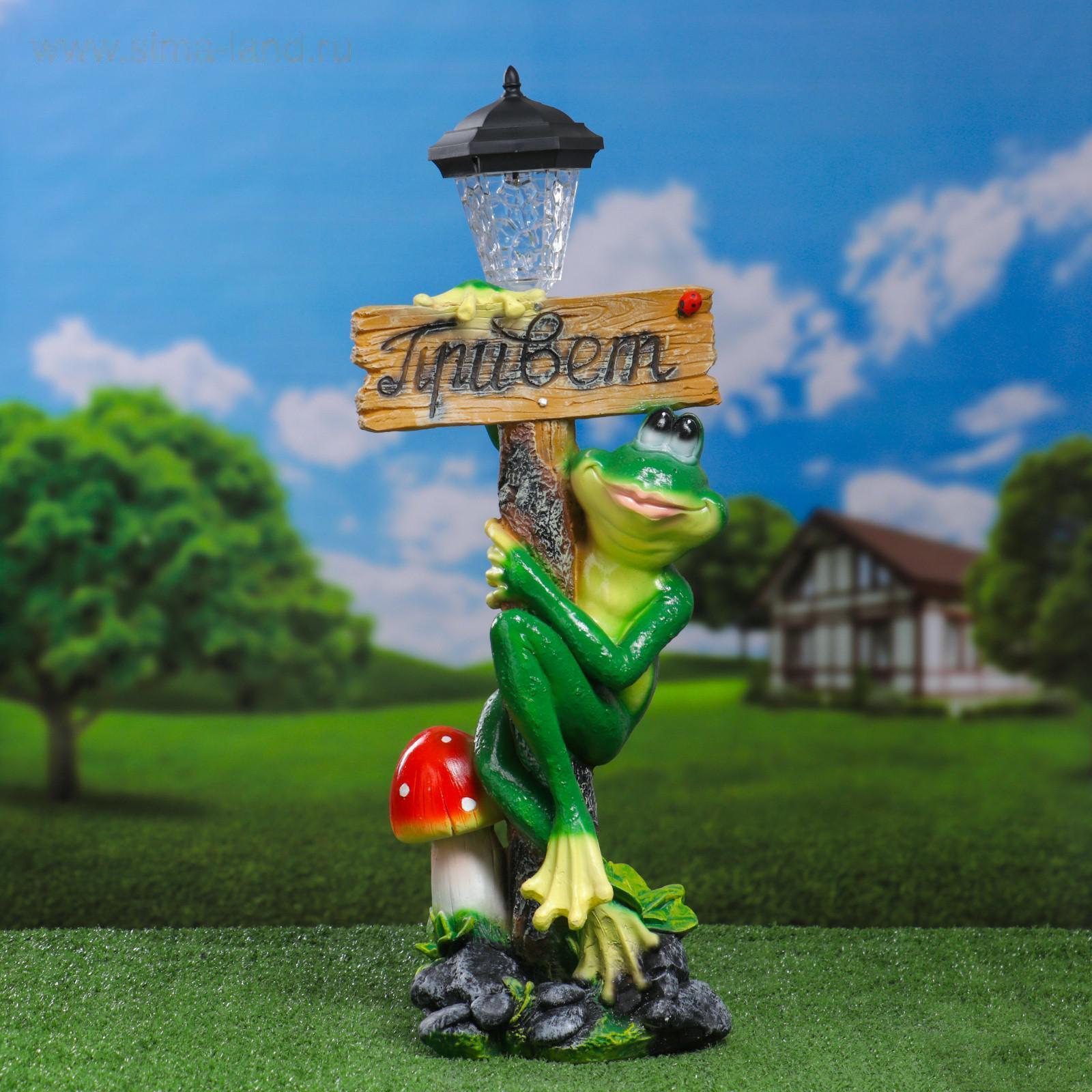 Садовый фонарь "Лягушка с фонарем и табличкой "Привет" 56х26см