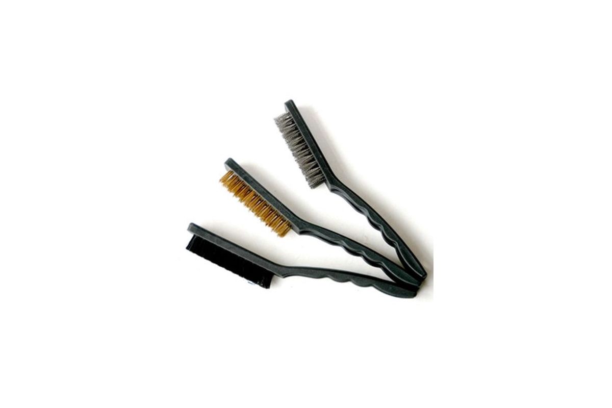 Набор щеток металлических больших KROFT 3 шт. 202022. Набор включает в себя 3 щетки длинной 225 мм, для ручной зачистки поверхностей. В набор входит: щетка из латунной проволоки, щетка из стальной проволоки и щетка из нейлона.